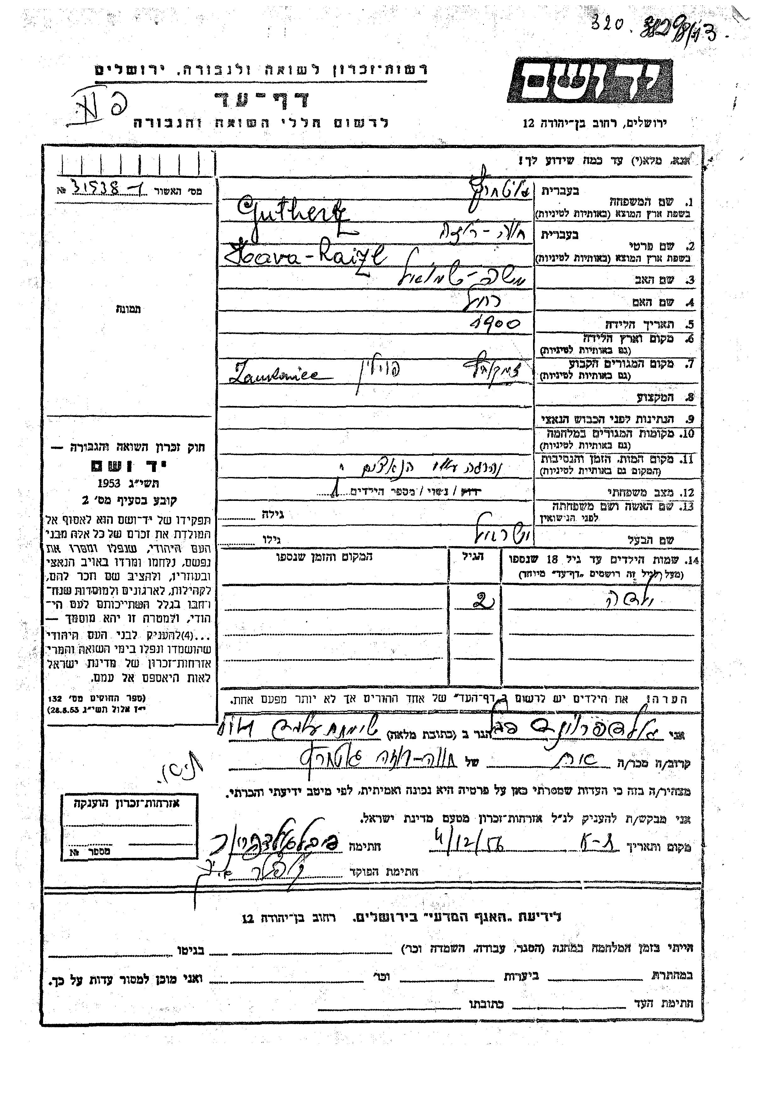 Яд Вашем - Листы свидетельских показаний Мемориального фонда