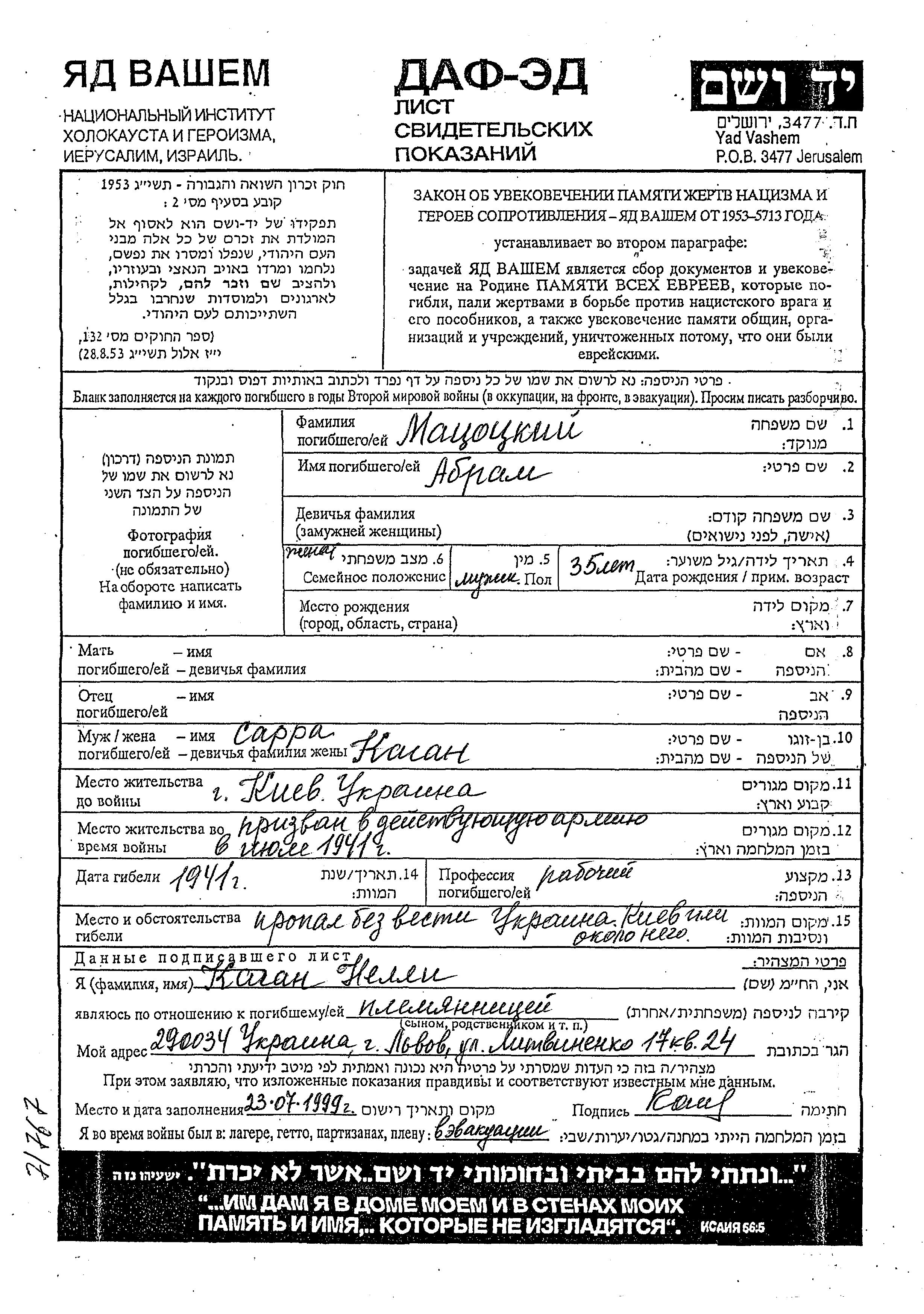 Поиск подателя Листа свидетельских показаний. Поиск по любому имени, включая уменьшительное или прозвище