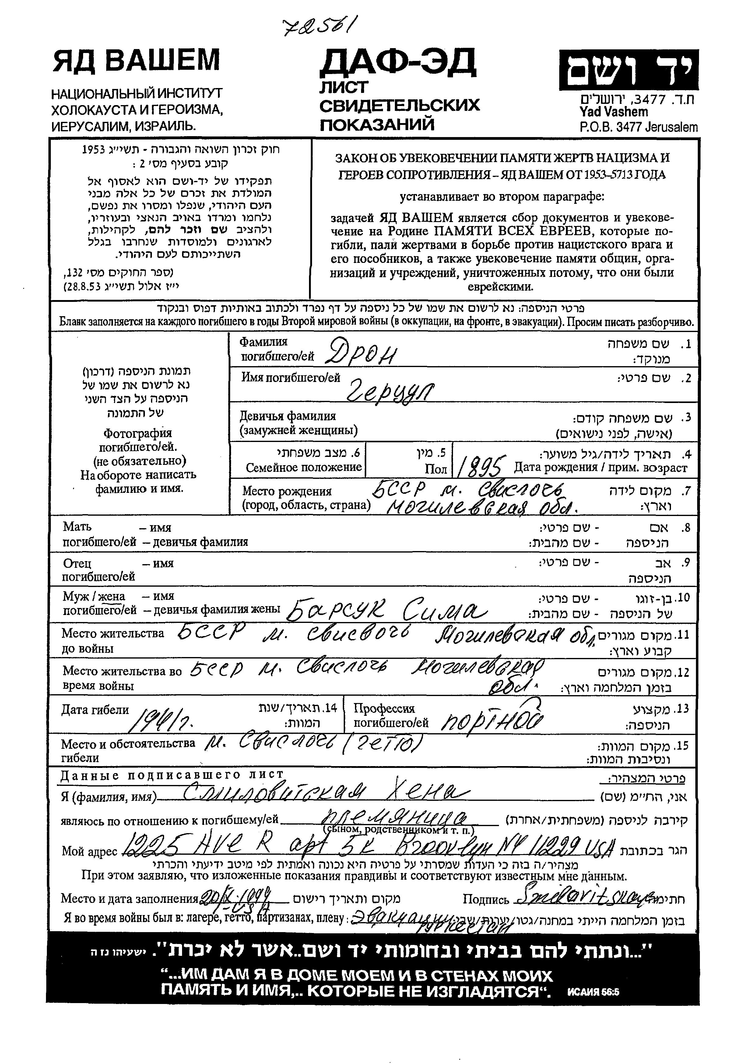 Поиск подателя Листа свидетельских показаний. Поиск по любому имени, включая уменьшительное или прозвище