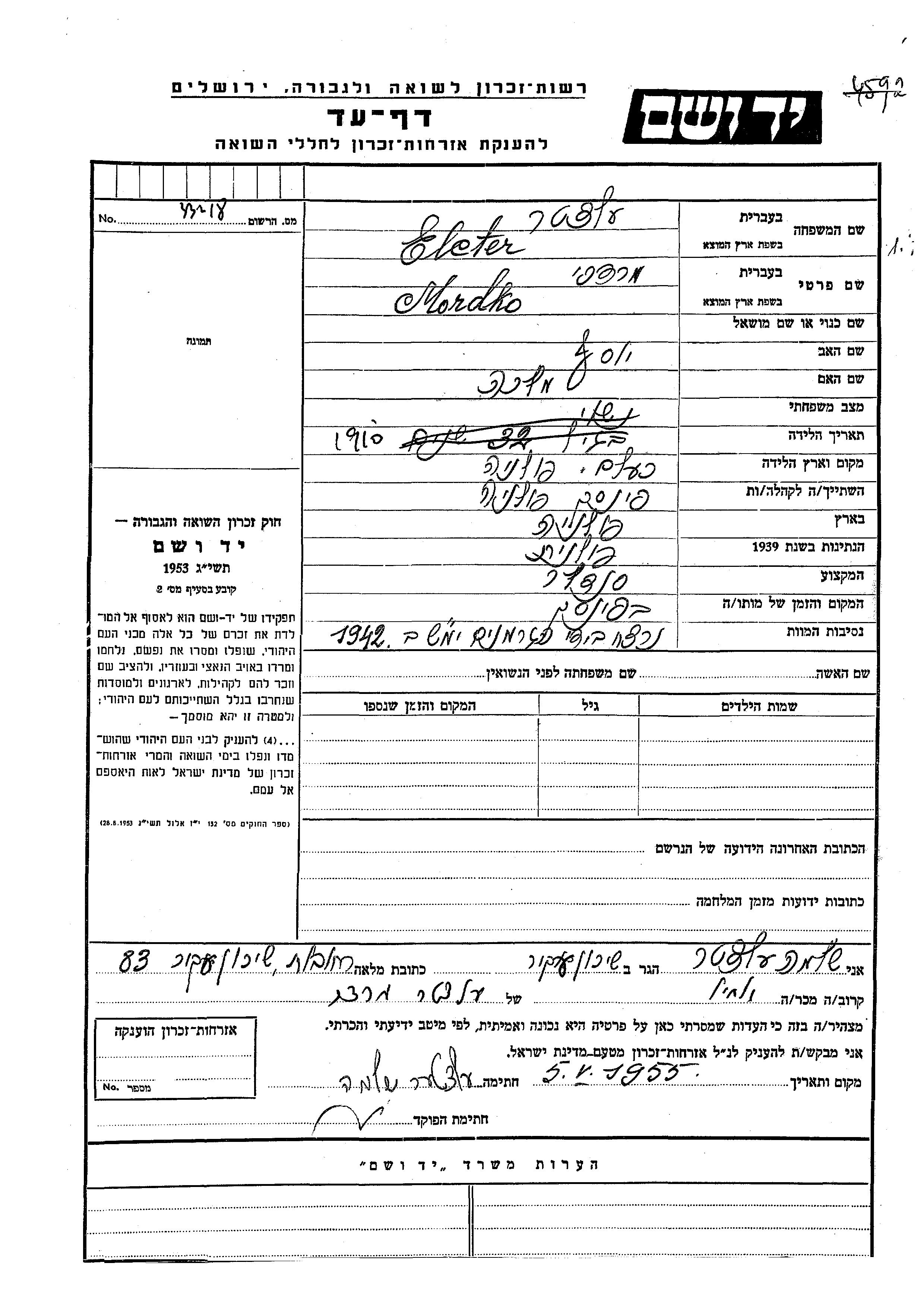 Яд Вашем - Листы свидетельских показаний Мемориального фонда