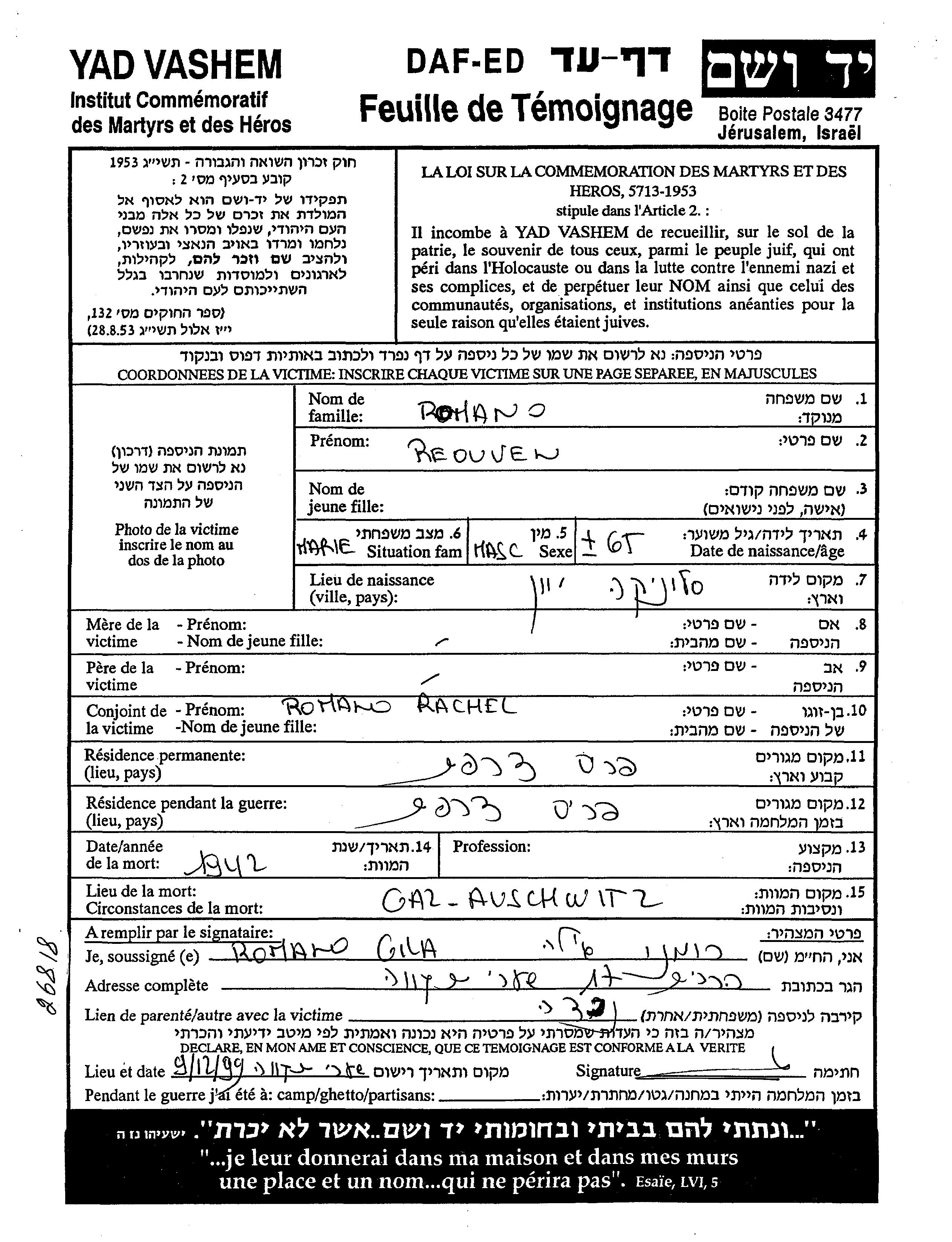 Романо Реувен Париж, Франция Лист свидетельских показаний