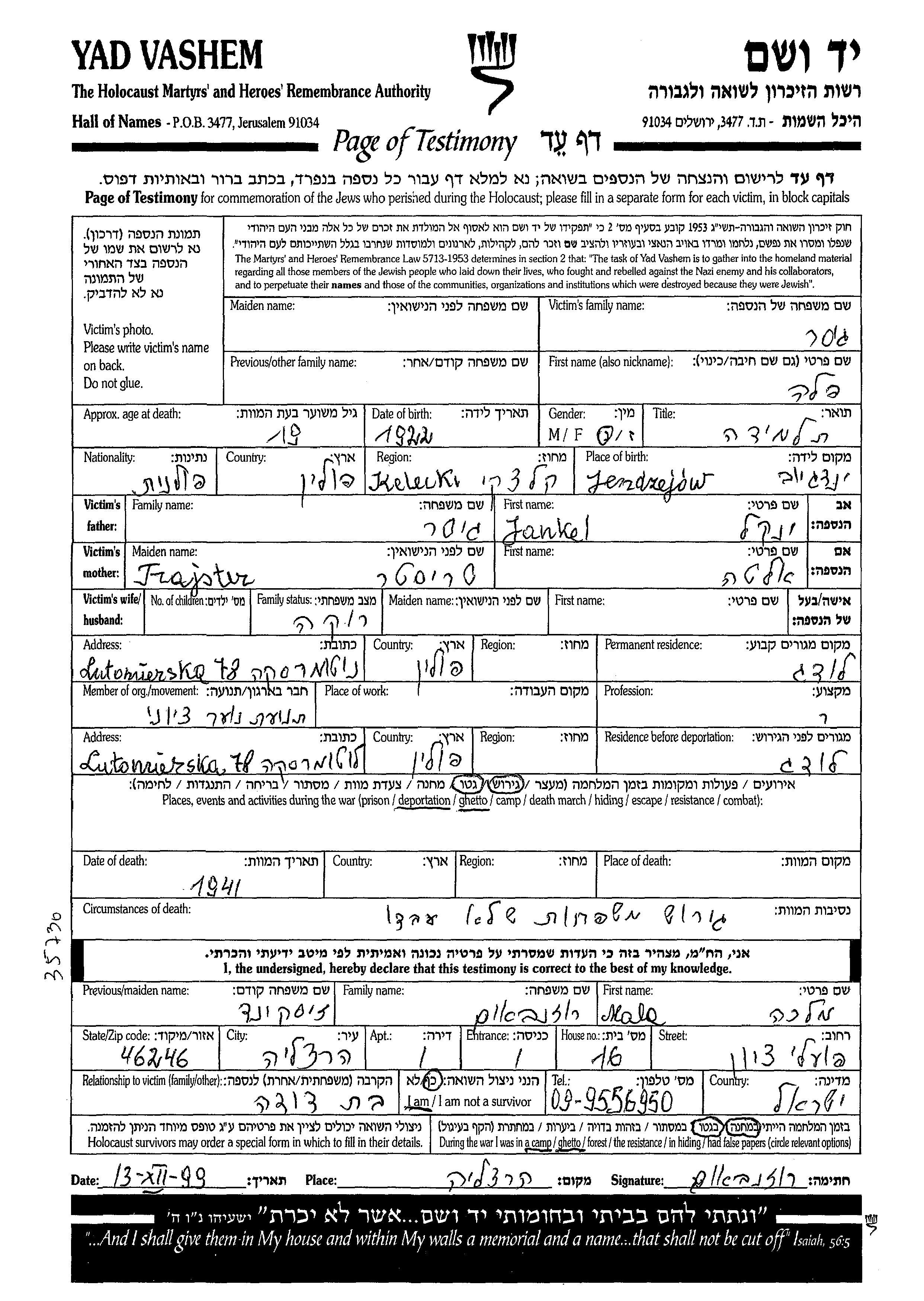Яд Вашем - Листы свидетельских показаний Мемориального фонда