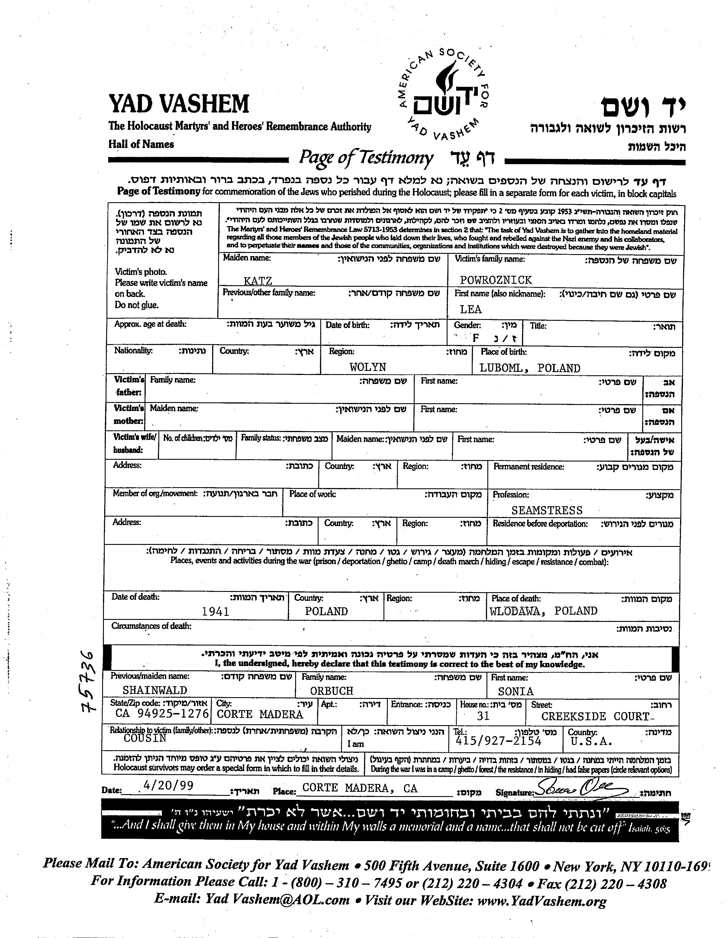 Яд Вашем - Листы свидетельских показаний Мемориального фонда