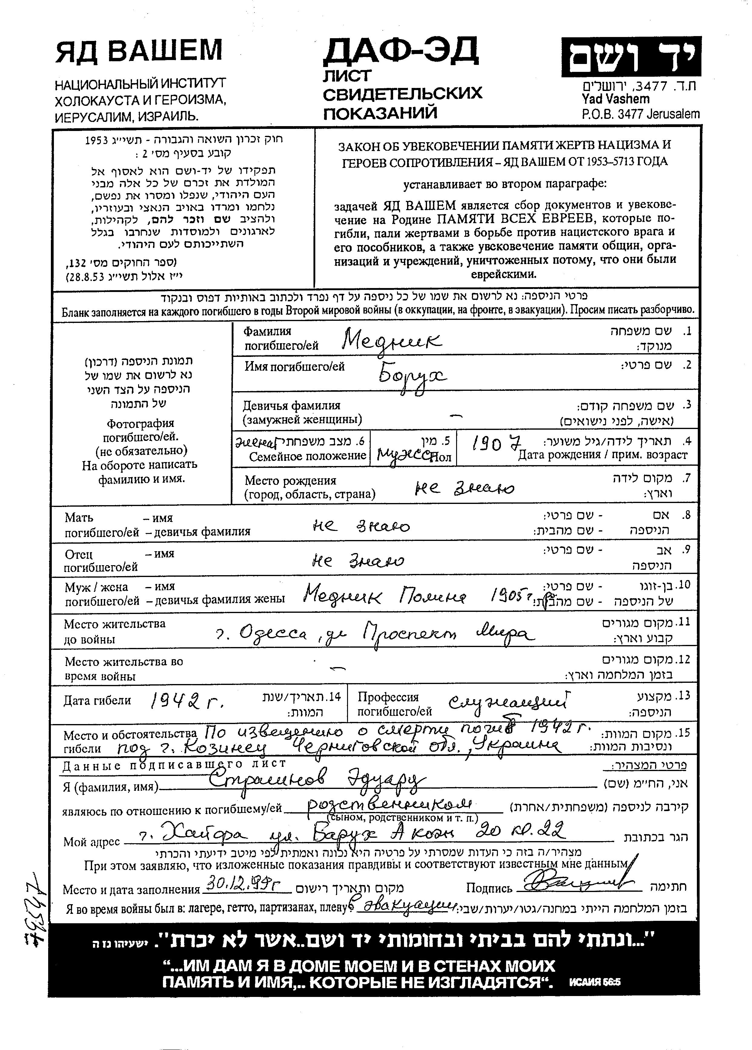 Поиск подателя Листа свидетельских показаний. Поиск по любому имени, включая уменьшительное или прозвище
