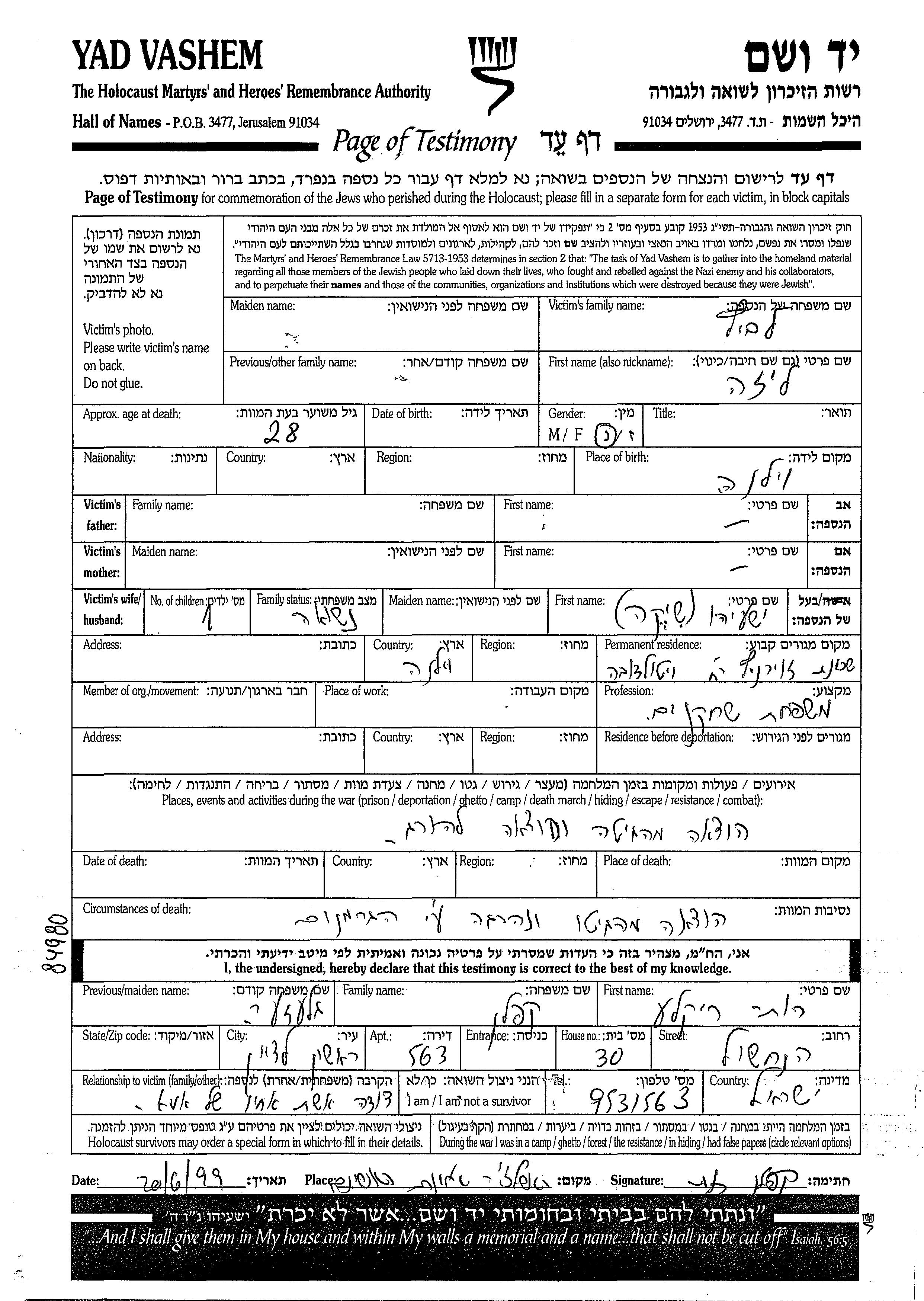 Яд Вашем - Листы свидетельских показаний Мемориального фонда