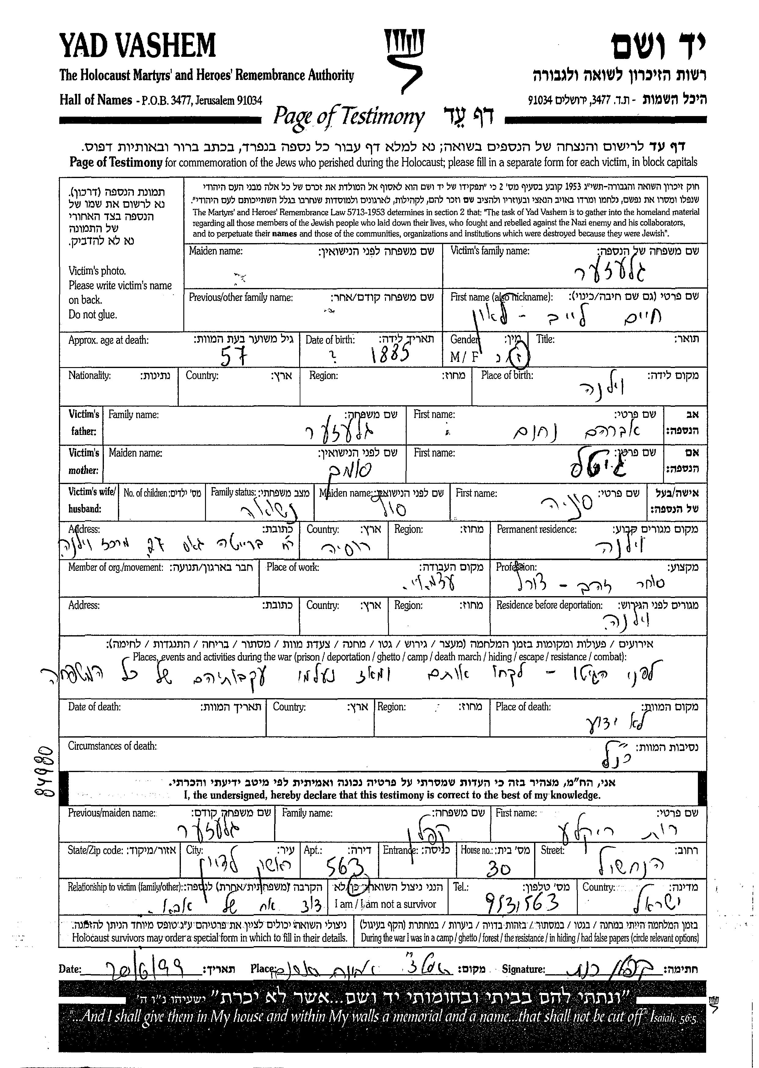 Яд Вашем - Листы свидетельских показаний Мемориального фонда