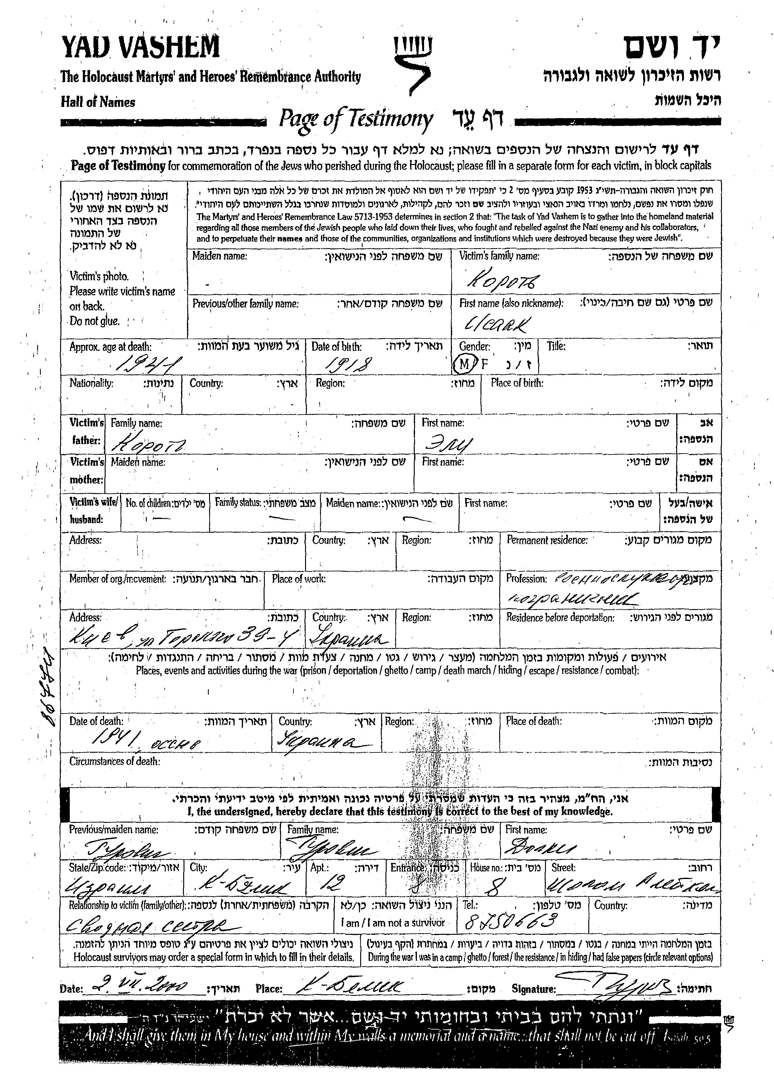 Яд Вашем - Листы свидетельских показаний Мемориального фонда