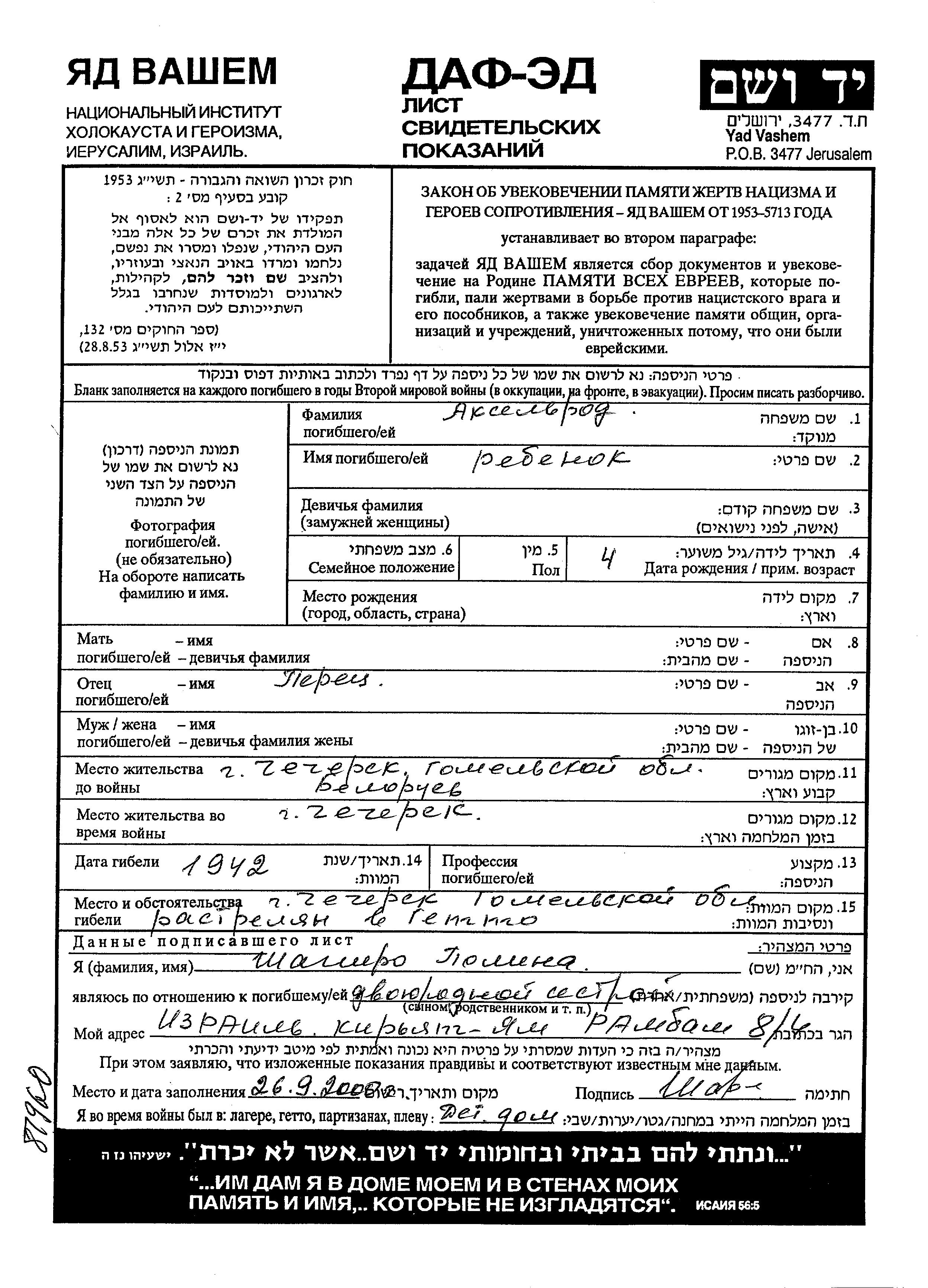 Поиск подателя Листа свидетельских показаний. Поиск по любому имени, включая уменьшительное или прозвище