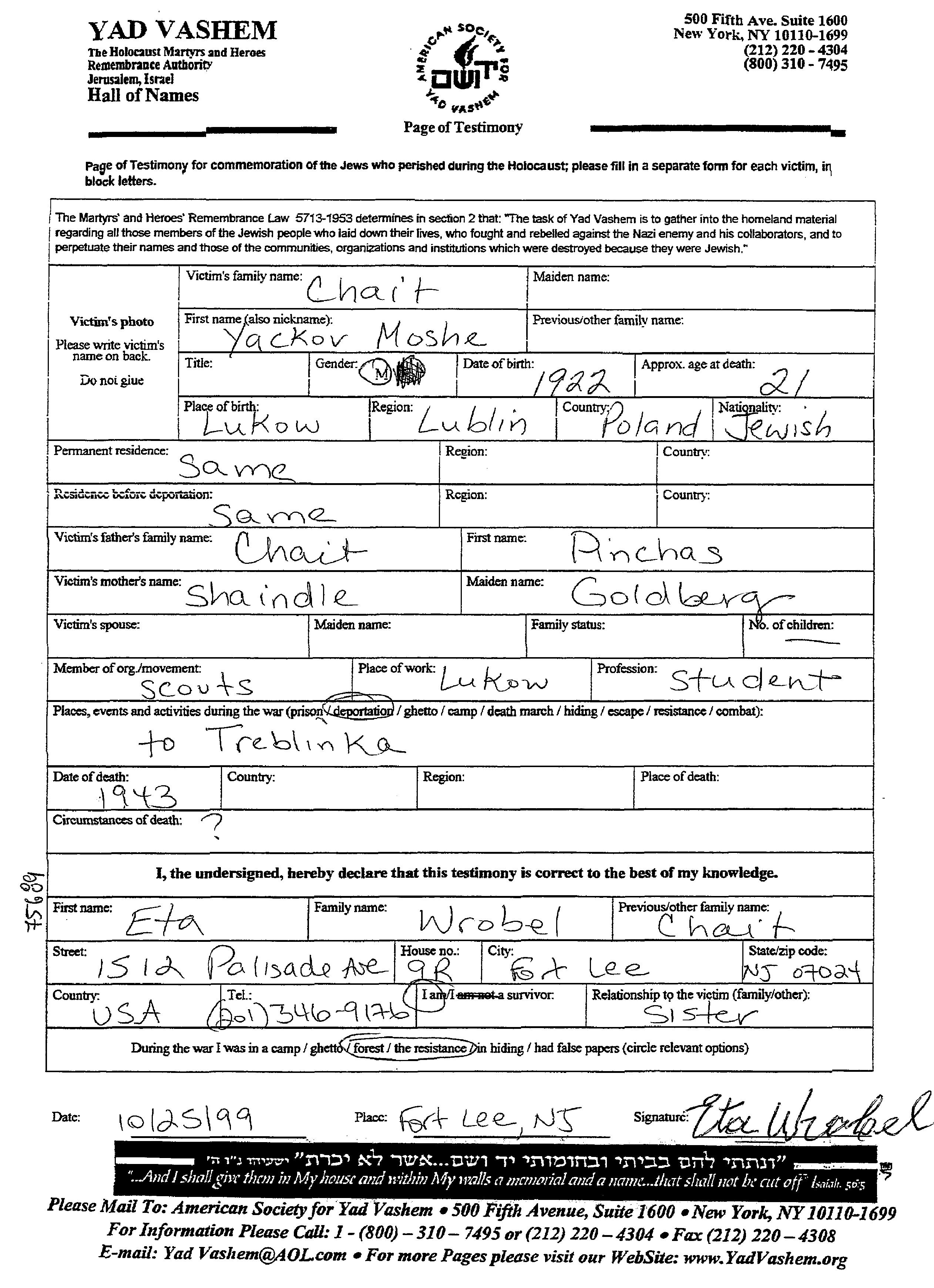 Во время Шоа евреев уничтожали разными способами: газовые камеры, расстрелы, их заживо хоронили или сжигали, непосильным принудительным трудом, голодом, эпидемиями, отсутствием минимальных гигиенических условий и медицинского обслуживания, и т.д. Некоторые евреи добровольно расстались со своей жизнью, чтобы избежать ареста и дальнейших преследований или чтобы покончить с безысходностью и бесконечными страданиями. Десятки тысяч еврейских солдат, служивших в Советской армии и попавших в плен, , были отобраны как евреи и убиты. Многие были зарегистрированы как «пропавшие без вести».