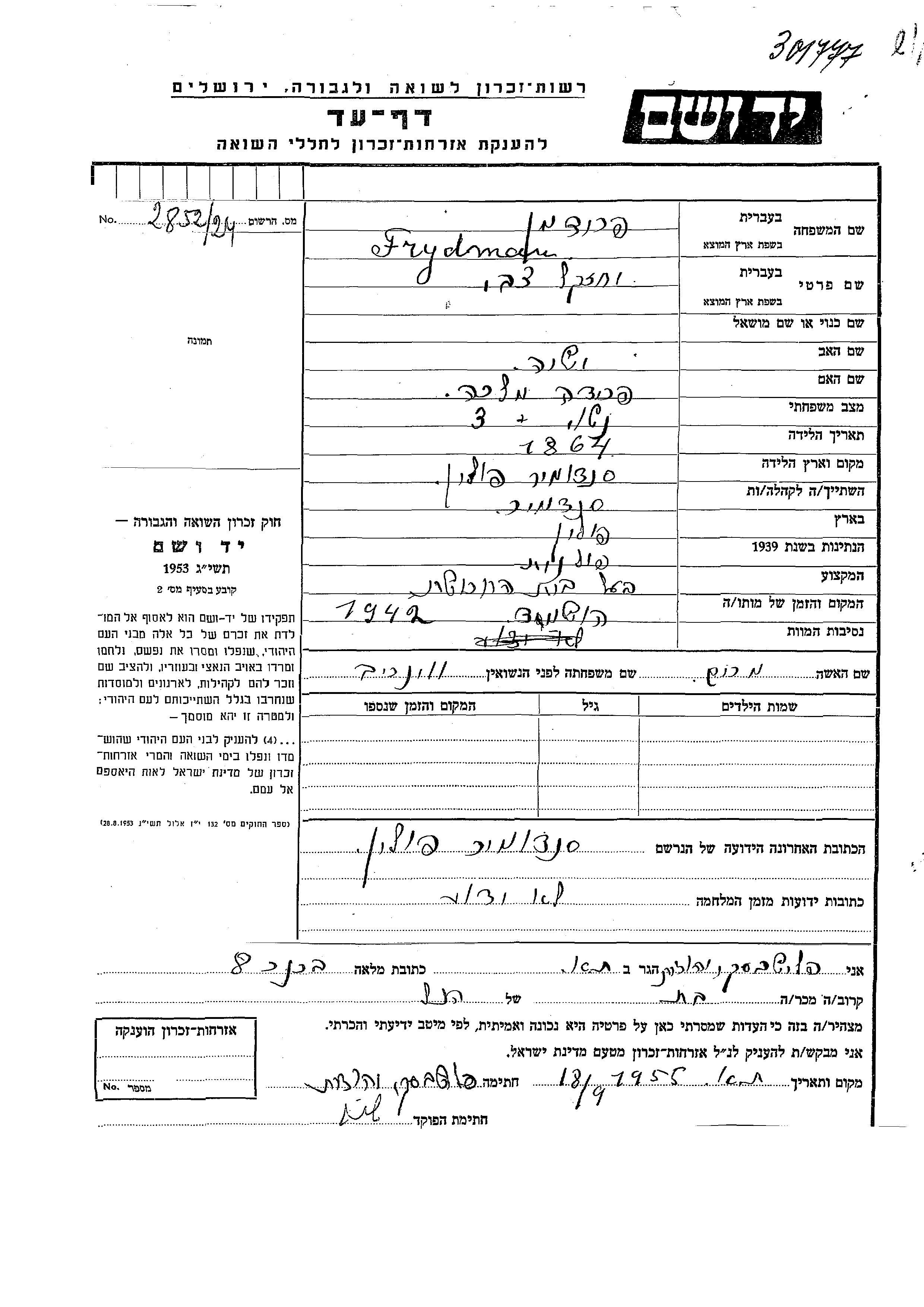 Яд Вашем - Листы свидетельских показаний Мемориального фонда