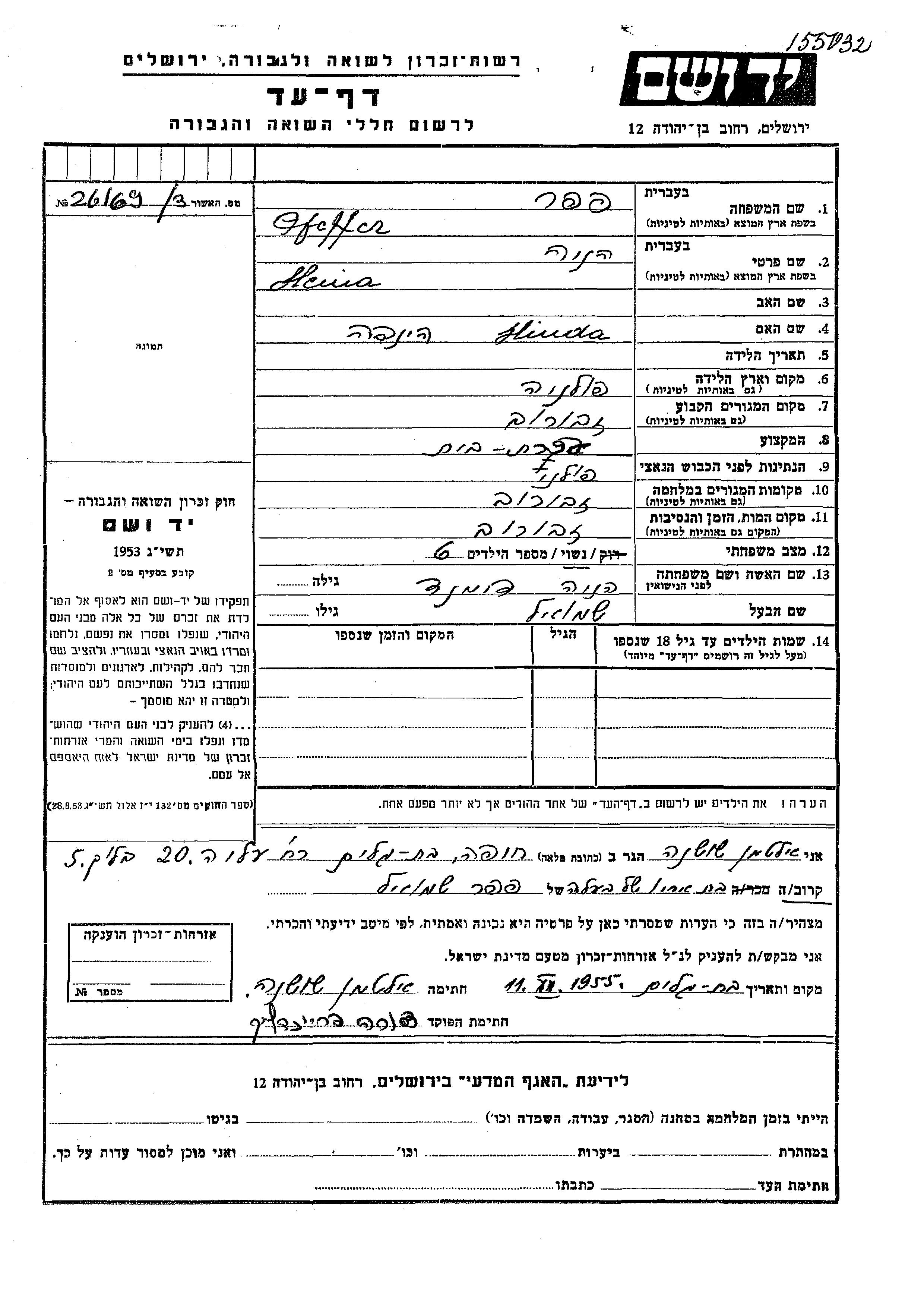 Яд Вашем - Листы свидетельских показаний Мемориального фонда