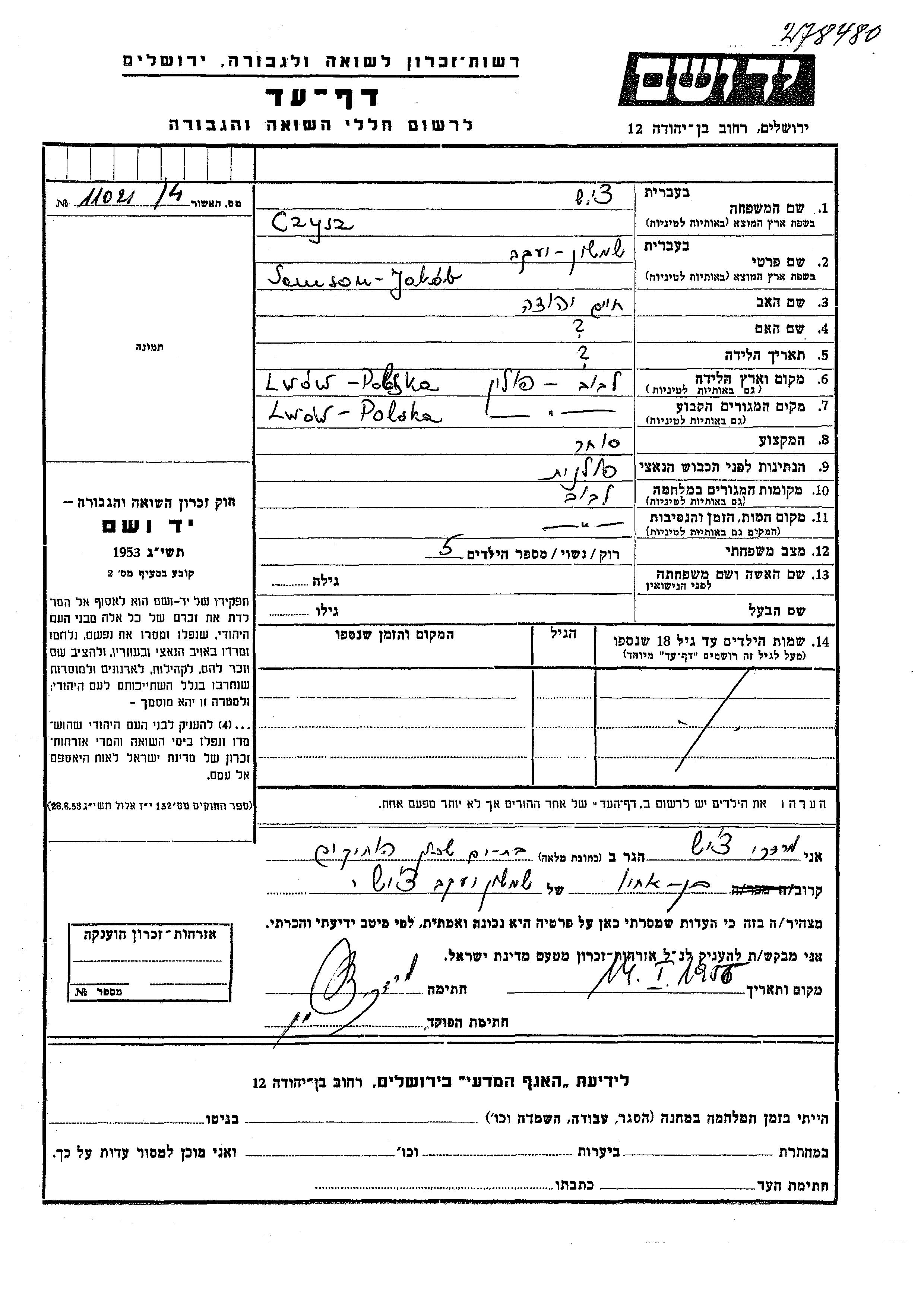 Яд Вашем - Листы свидетельских показаний Мемориального фонда