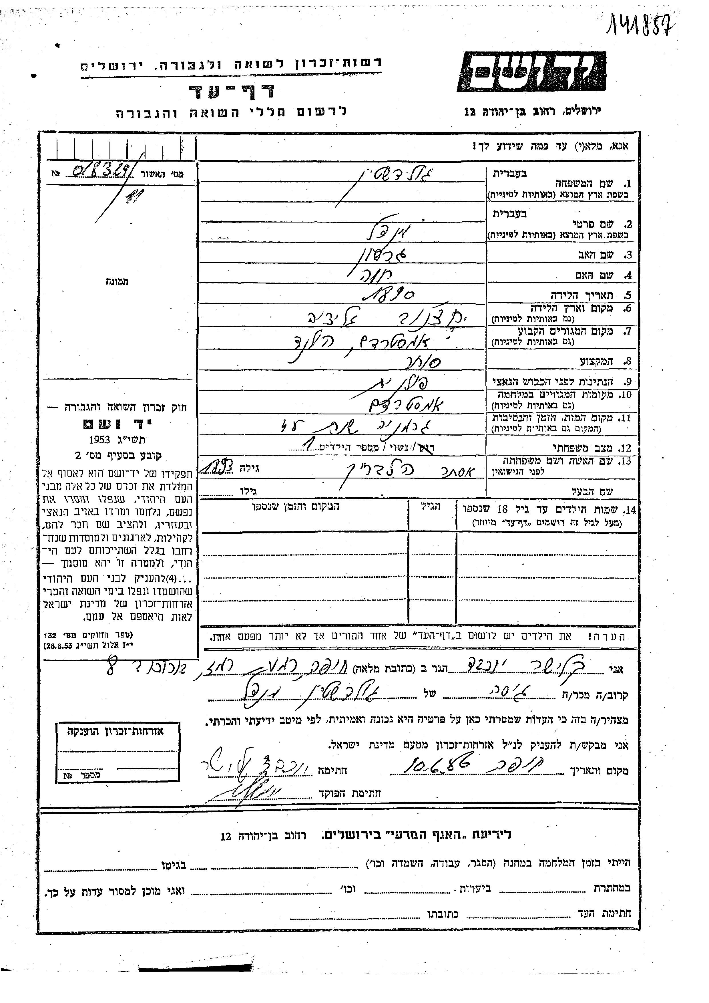 Яд Вашем - Листы свидетельских показаний Мемориального фонда