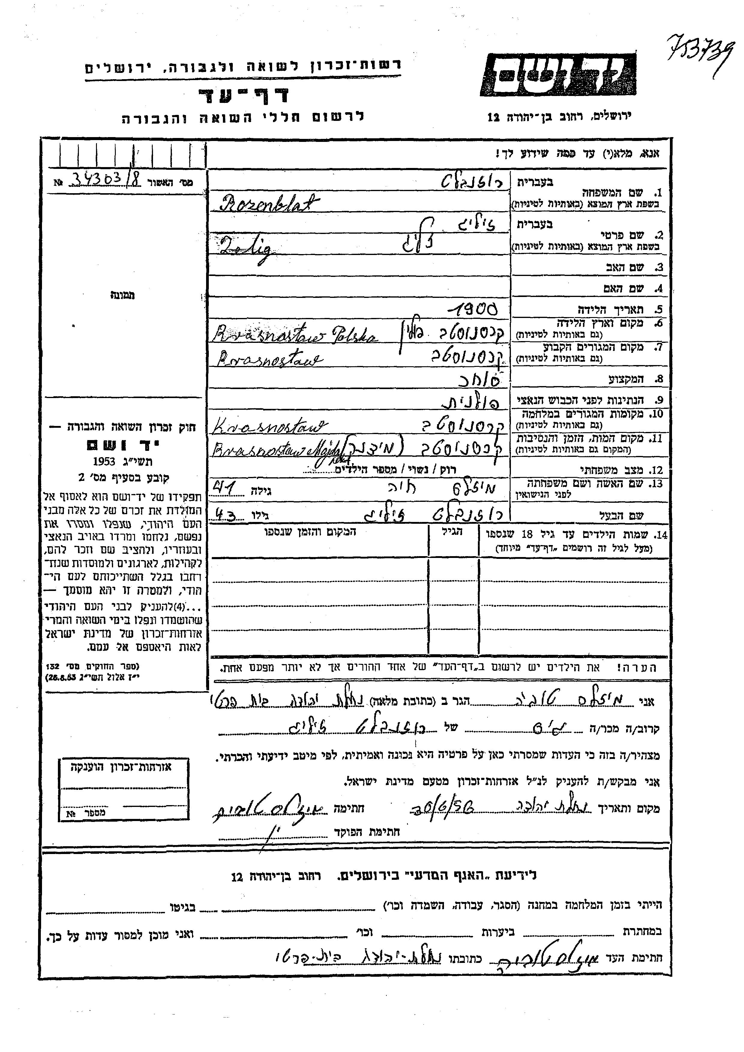 Розенблат Зейлиг 1900 Красностав, Польша Лист свидетельских показаний