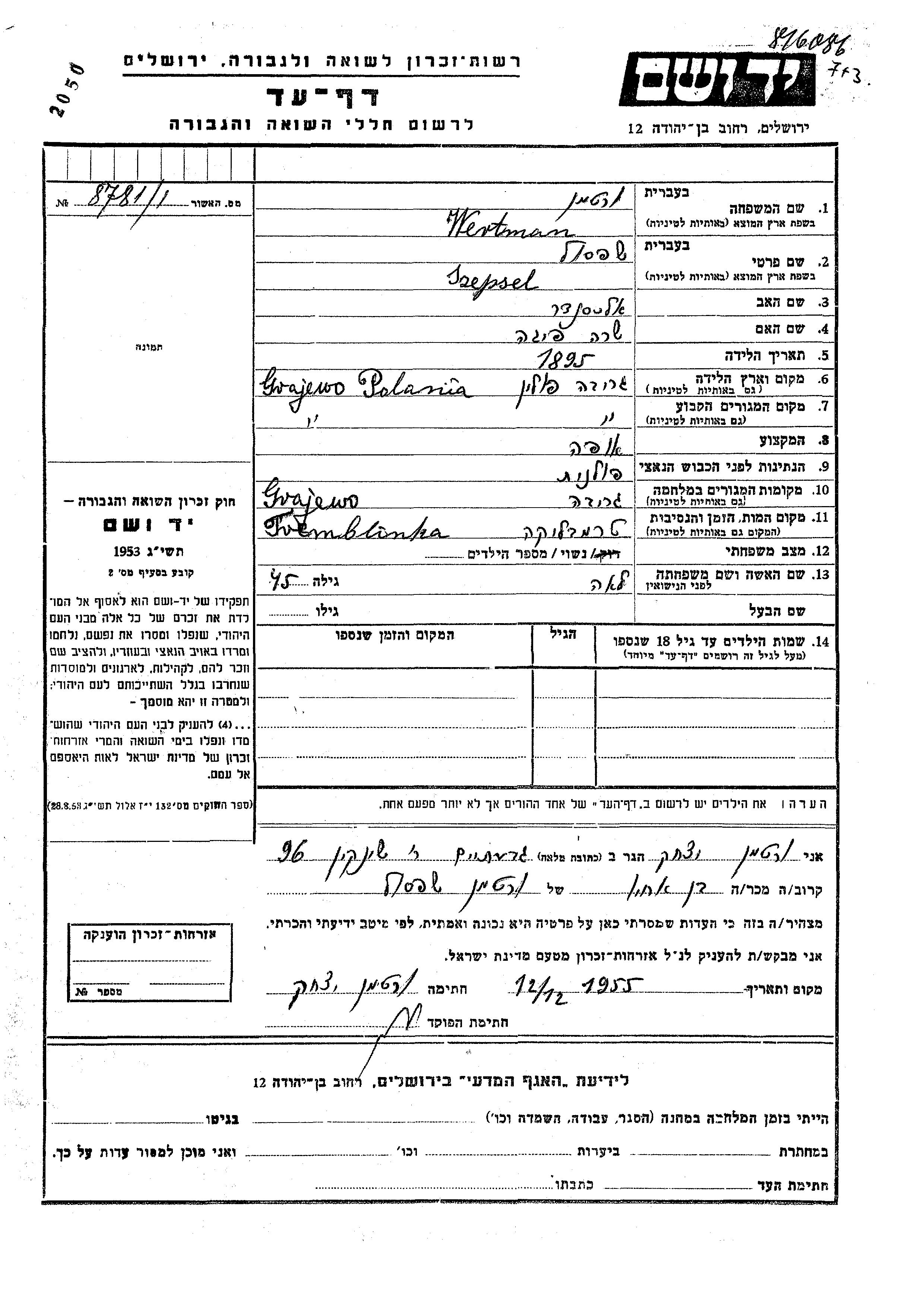 Яд Вашем - Листы свидетельских показаний Мемориального фонда