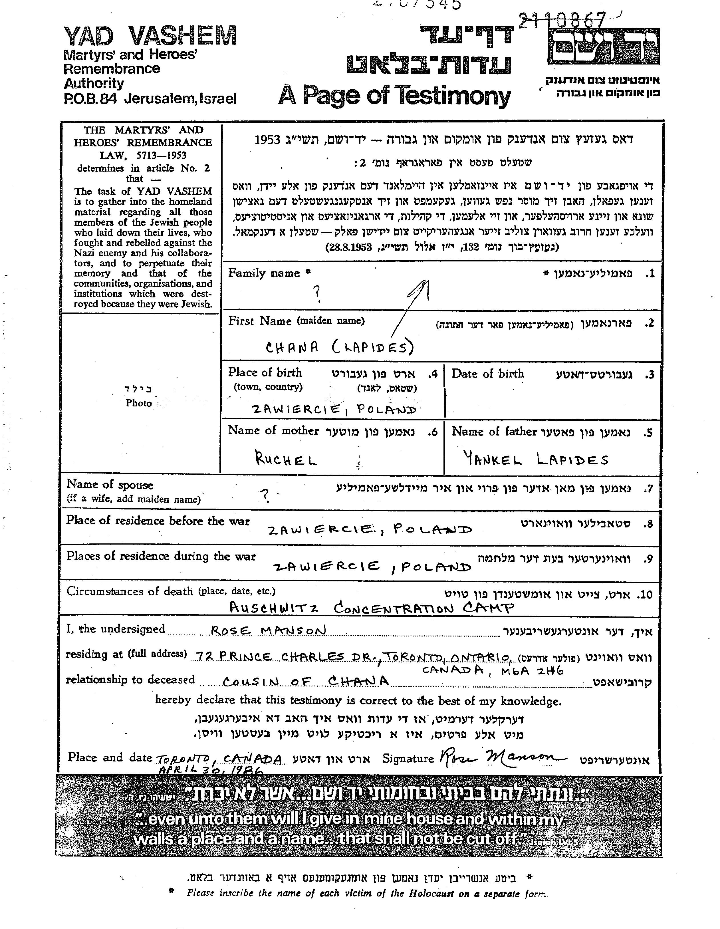 Во время Шоа евреев уничтожали разными способами: газовые камеры, расстрелы, их заживо хоронили или сжигали, непосильным принудительным трудом, голодом, эпидемиями, отсутствием минимальных гигиенических условий и медицинского обслуживания, и т.д. Некоторые евреи добровольно расстались со своей жизнью, чтобы избежать ареста и дальнейших преследований или чтобы покончить с безысходностью и бесконечными страданиями. Десятки тысяч еврейских солдат, служивших в Советской армии и попавших в плен, , были отобраны как евреи и убиты. Многие были зарегистрированы как «пропавшие без вести».