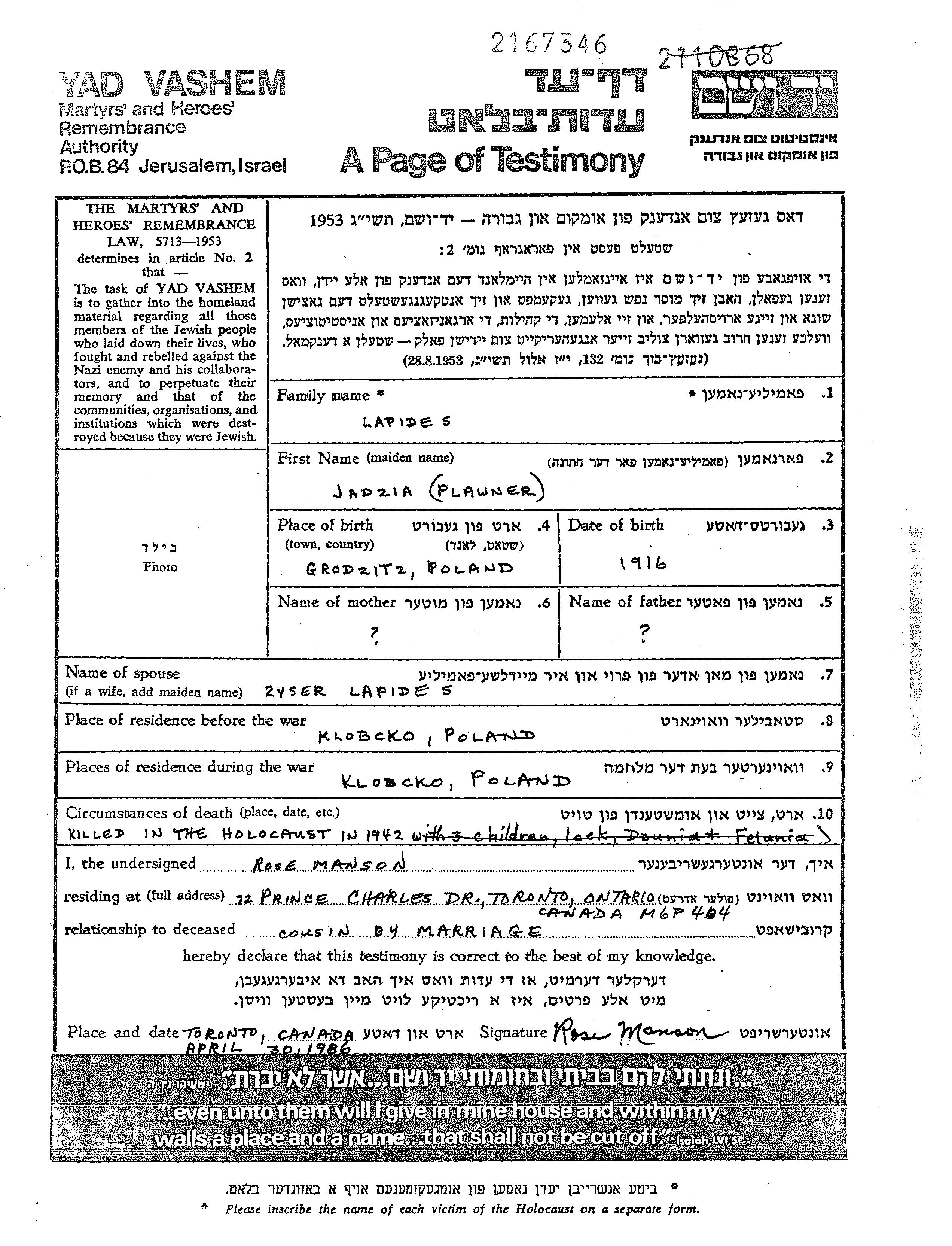 Во время Шоа евреев уничтожали разными способами: газовые камеры, расстрелы, их заживо хоронили или сжигали, непосильным принудительным трудом, голодом, эпидемиями, отсутствием минимальных гигиенических условий и медицинского обслуживания, и т.д. Некоторые евреи добровольно расстались со своей жизнью, чтобы избежать ареста и дальнейших преследований или чтобы покончить с безысходностью и бесконечными страданиями. Десятки тысяч еврейских солдат, служивших в Советской армии и попавших в плен, , были отобраны как евреи и убиты. Многие были зарегистрированы как «пропавшие без вести».