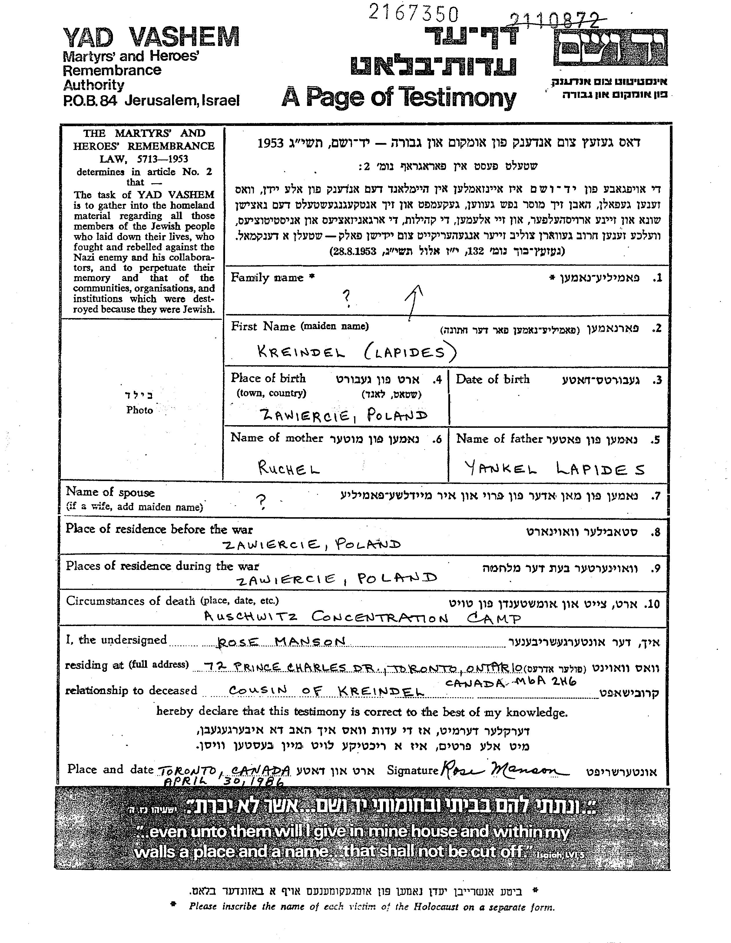 Поиск подателя Листа свидетельских показаний. Поиск по любому имени, включая уменьшительное или прозвище