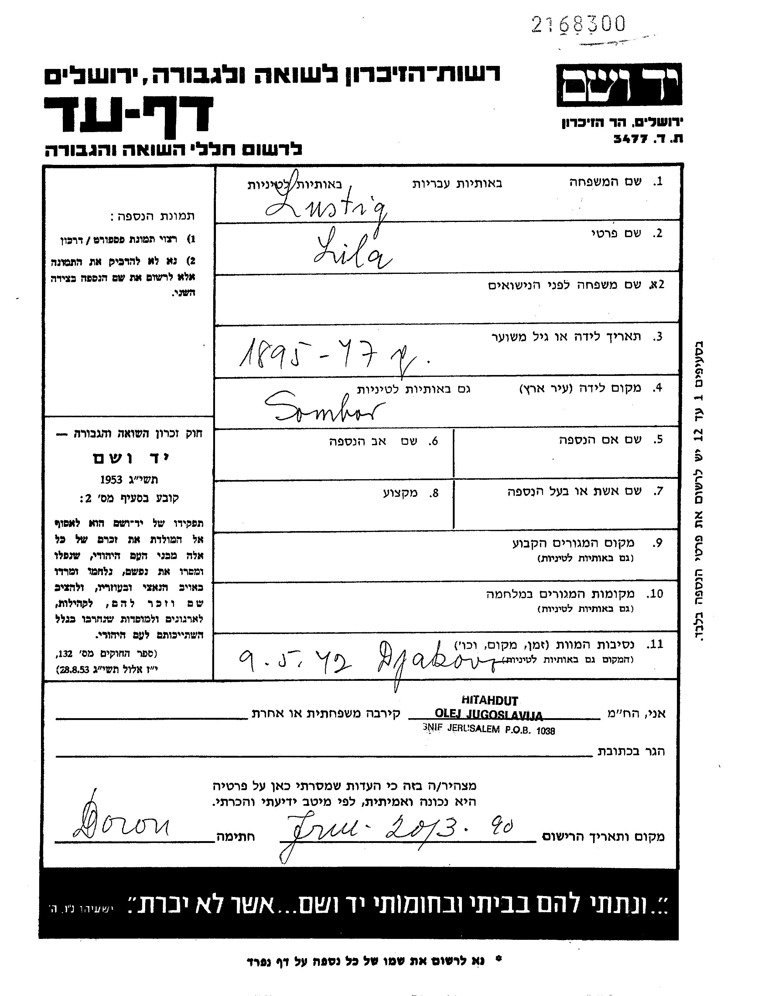 Яд Вашем - Листы свидетельских показаний Мемориального фонда