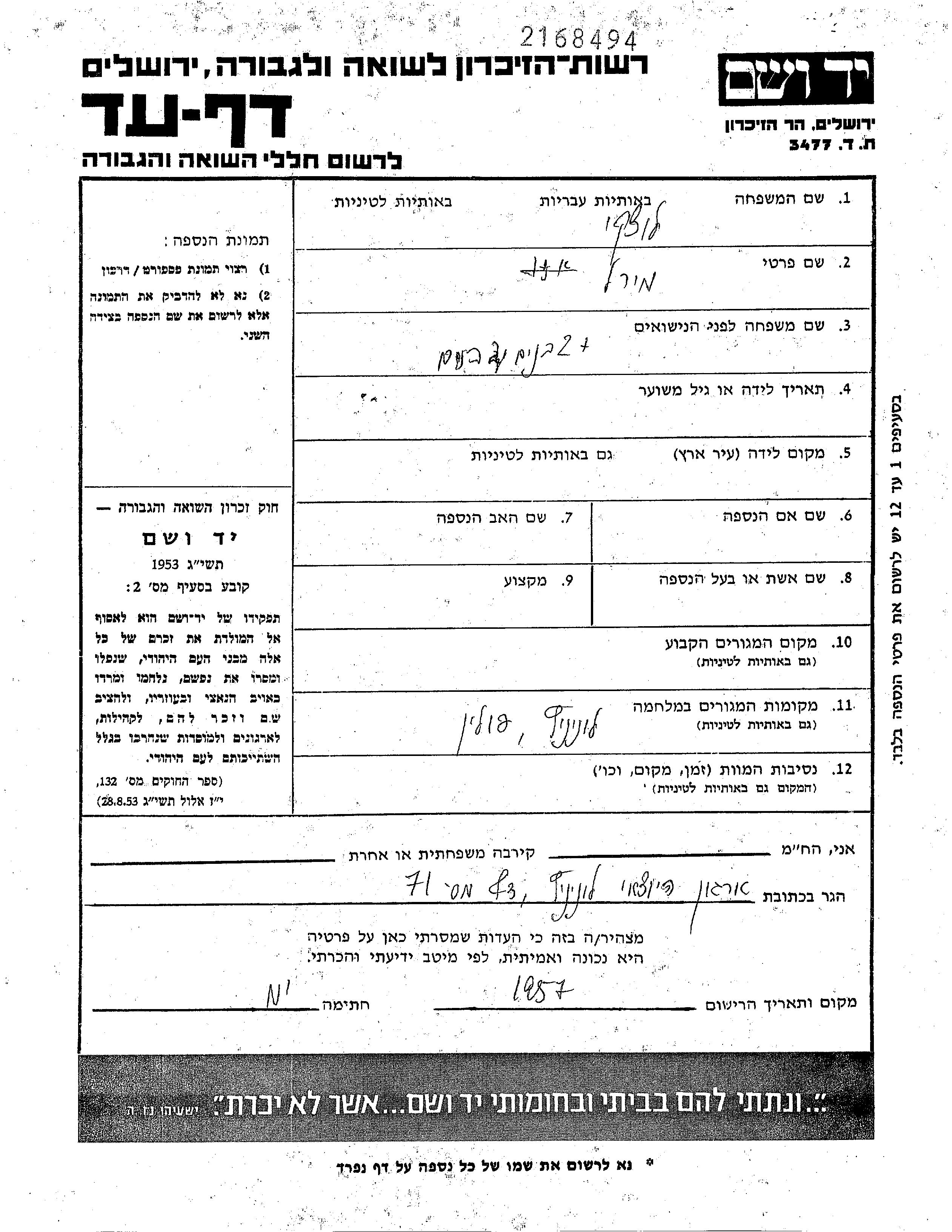 Яд Вашем - Листы свидетельских показаний Мемориального фонда