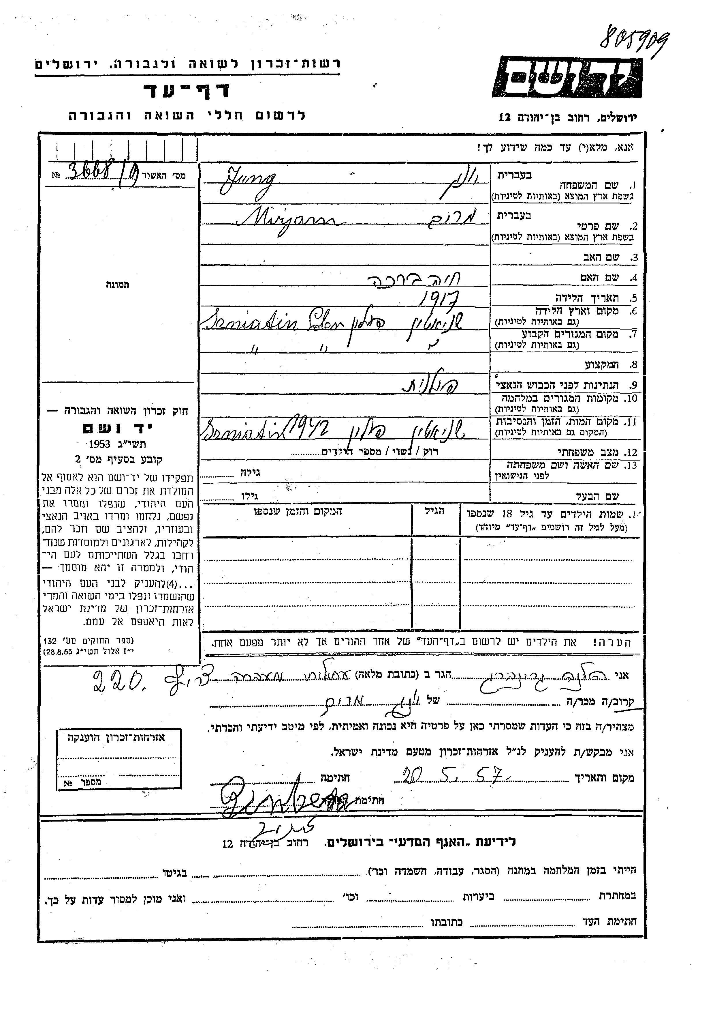Яд Вашем - Листы свидетельских показаний Мемориального фонда