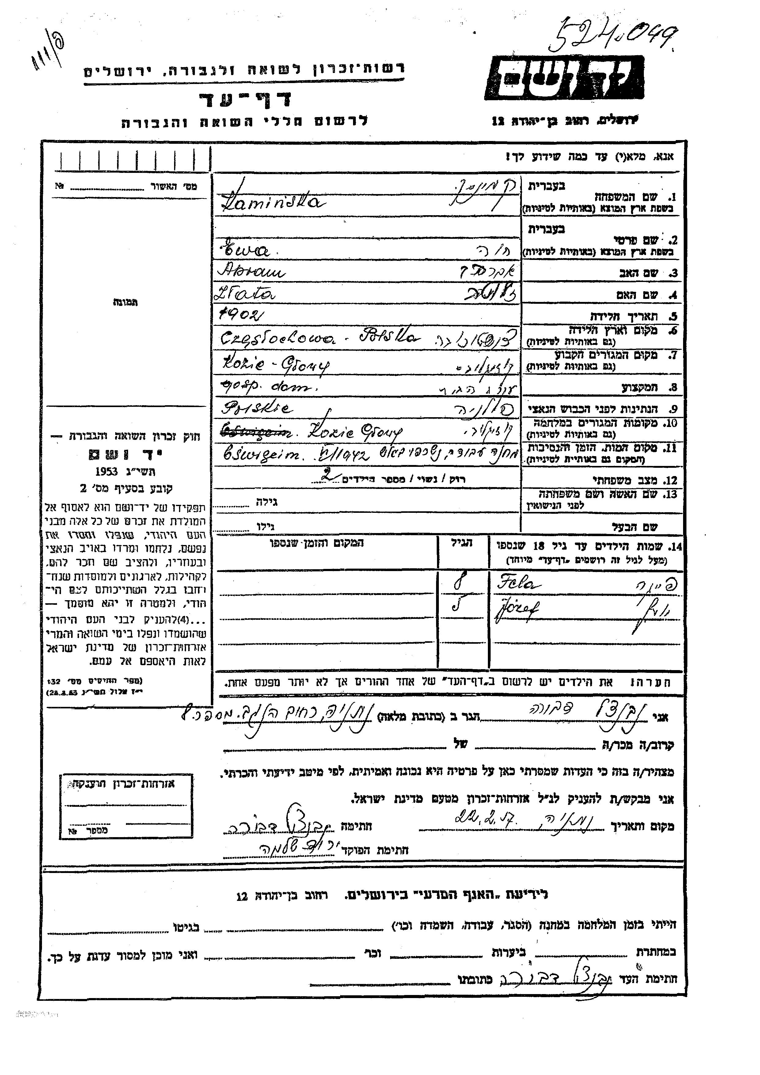 Яд Вашем - Листы свидетельских показаний Мемориального фонда
