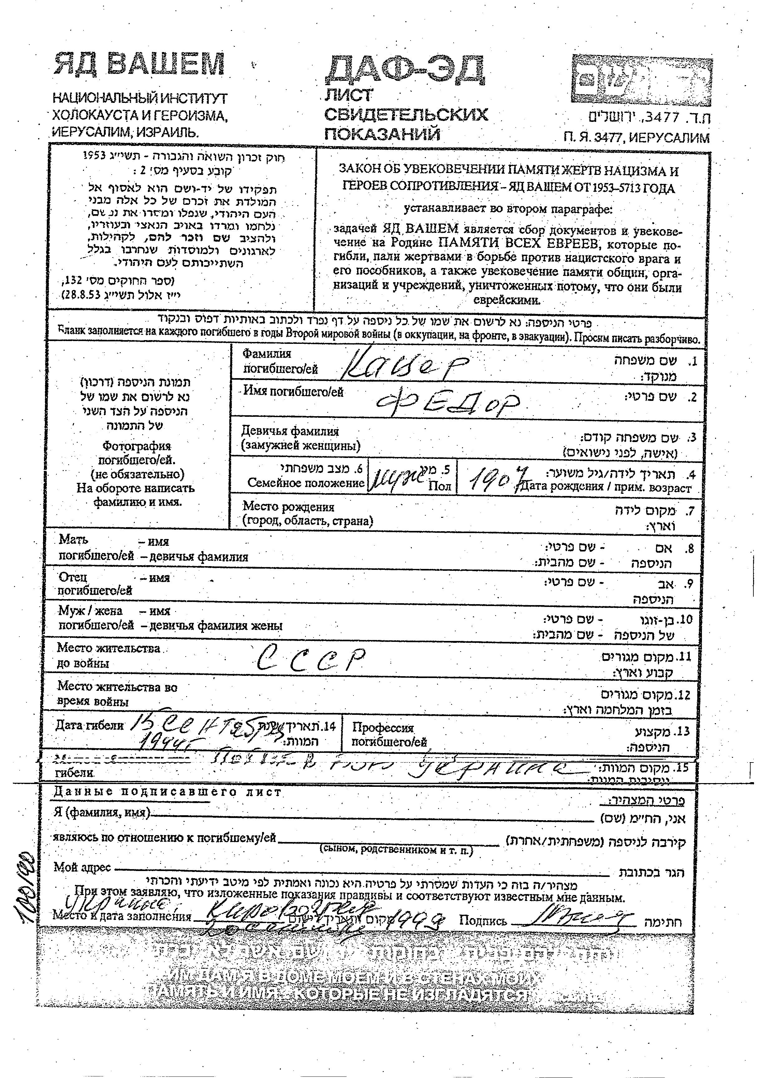 Поиск подателя Листа свидетельских показаний. Поиск по любому имени, включая уменьшительное или прозвище