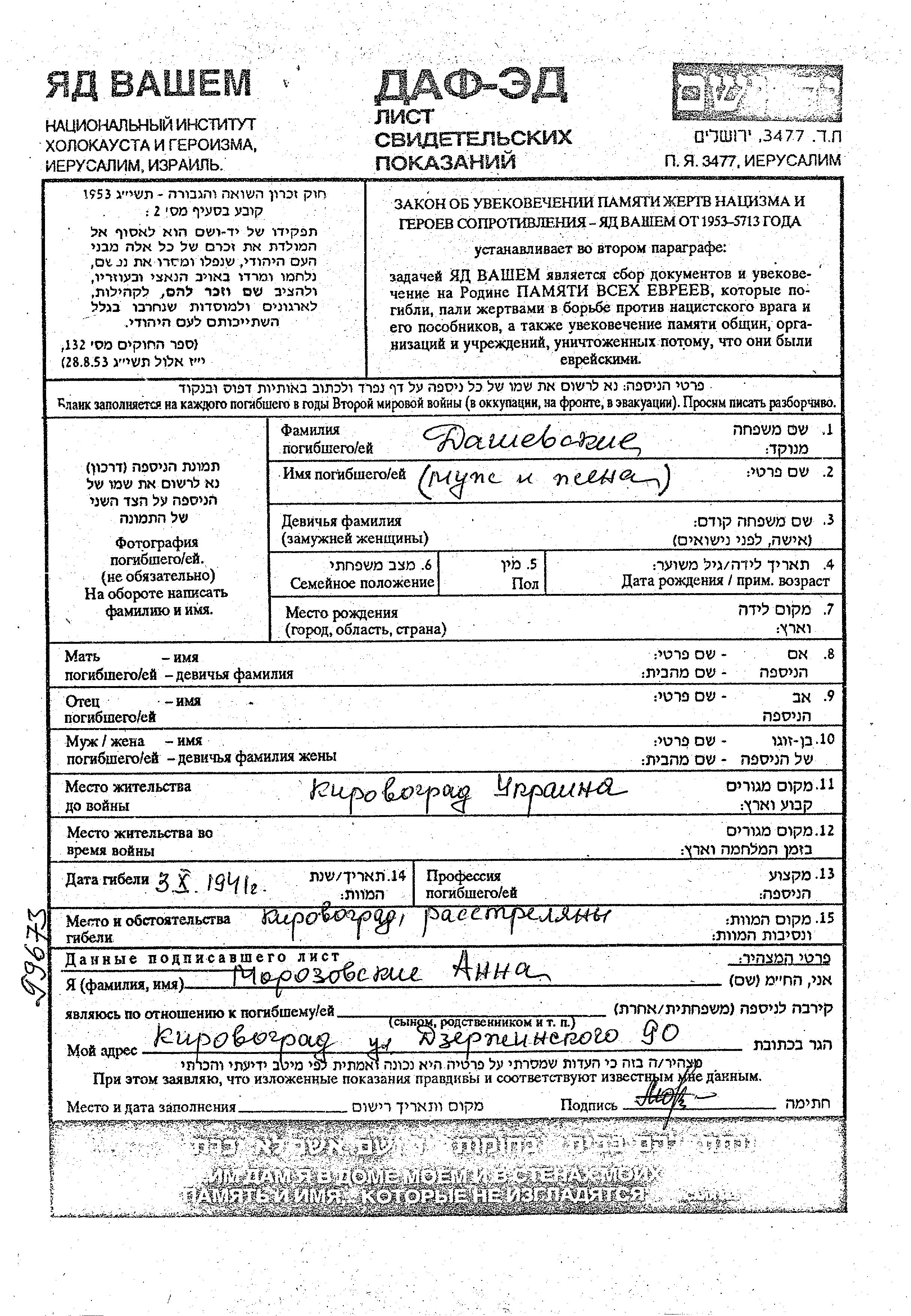 Поиск подателя Листа свидетельских показаний. Поиск по любому имени, включая уменьшительное или прозвище