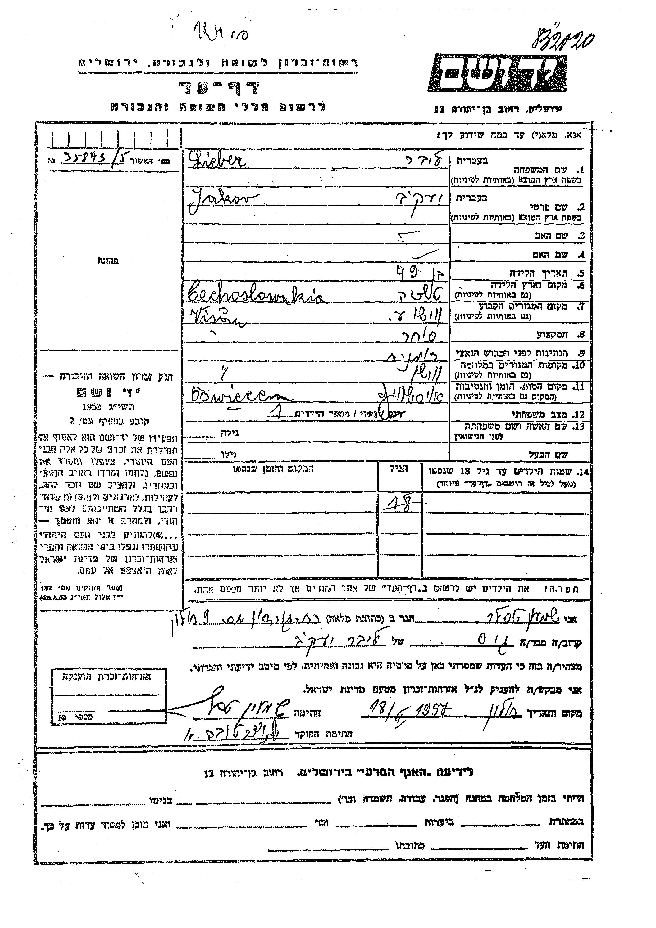 Яков Либер, место рождения: Чехословакия. Торговец / торговка. Женат / замужем. Место жительства до войны: Вишау, Румыния. Место во время войны: Вишау, Румыния.