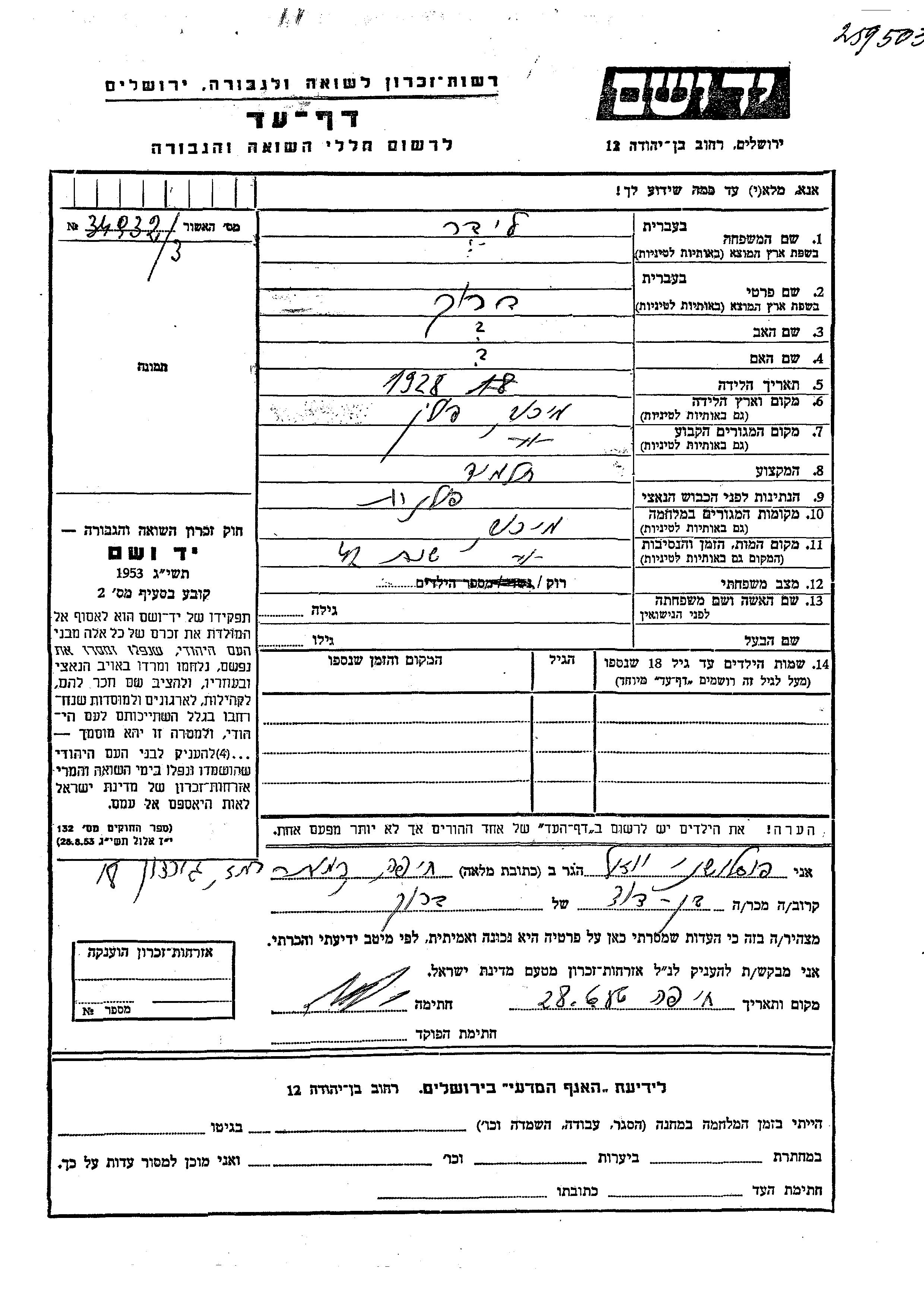 Яд Вашем - Листы свидетельских показаний Мемориального фонда