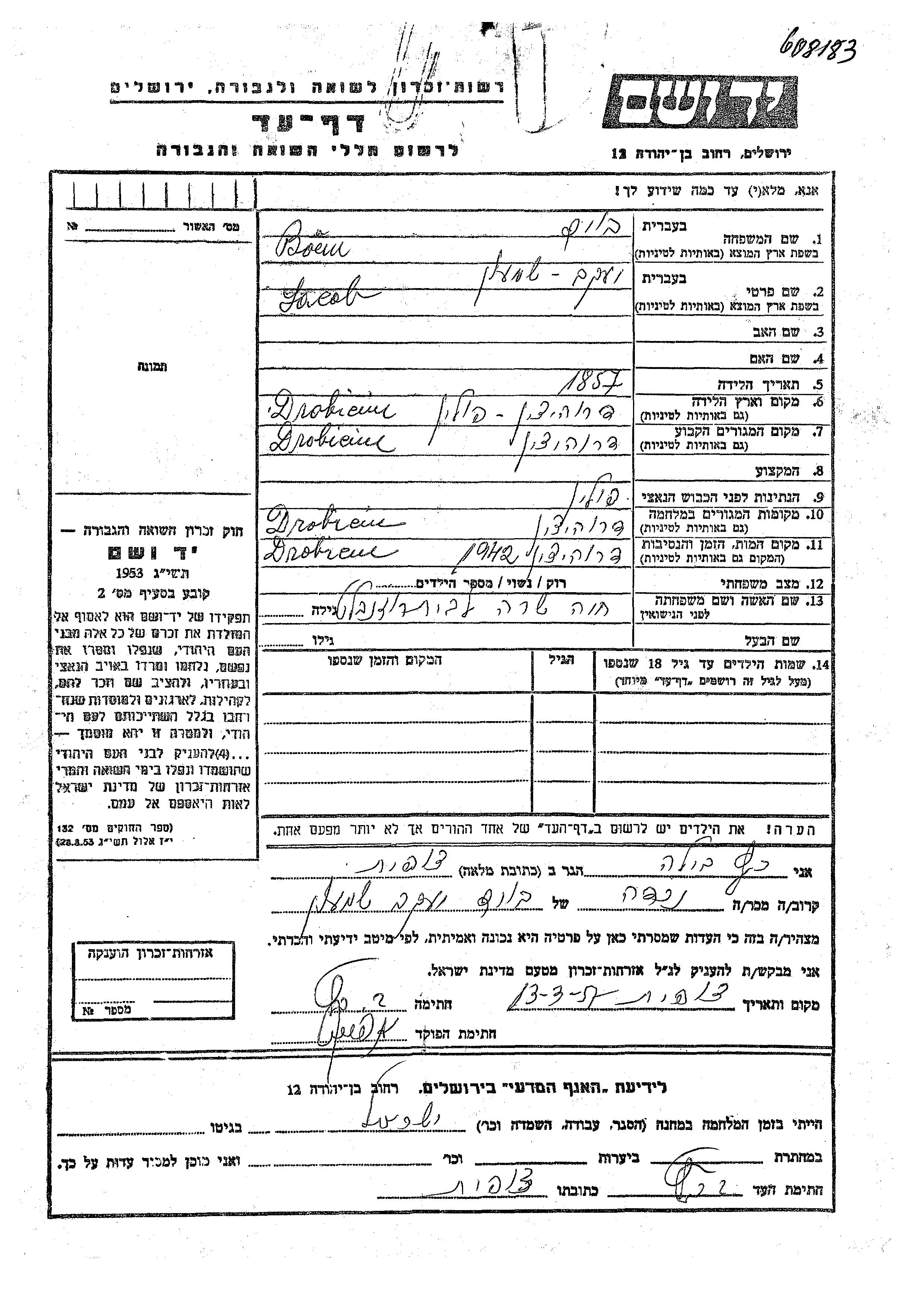 Якоб Шимон Бём Бойм, место рождения: Дрогичин, Польша. Женат / замужем. Место жительства до войны: Дрогичин, Польша. Место во время войны: Дрогичин, Польша.