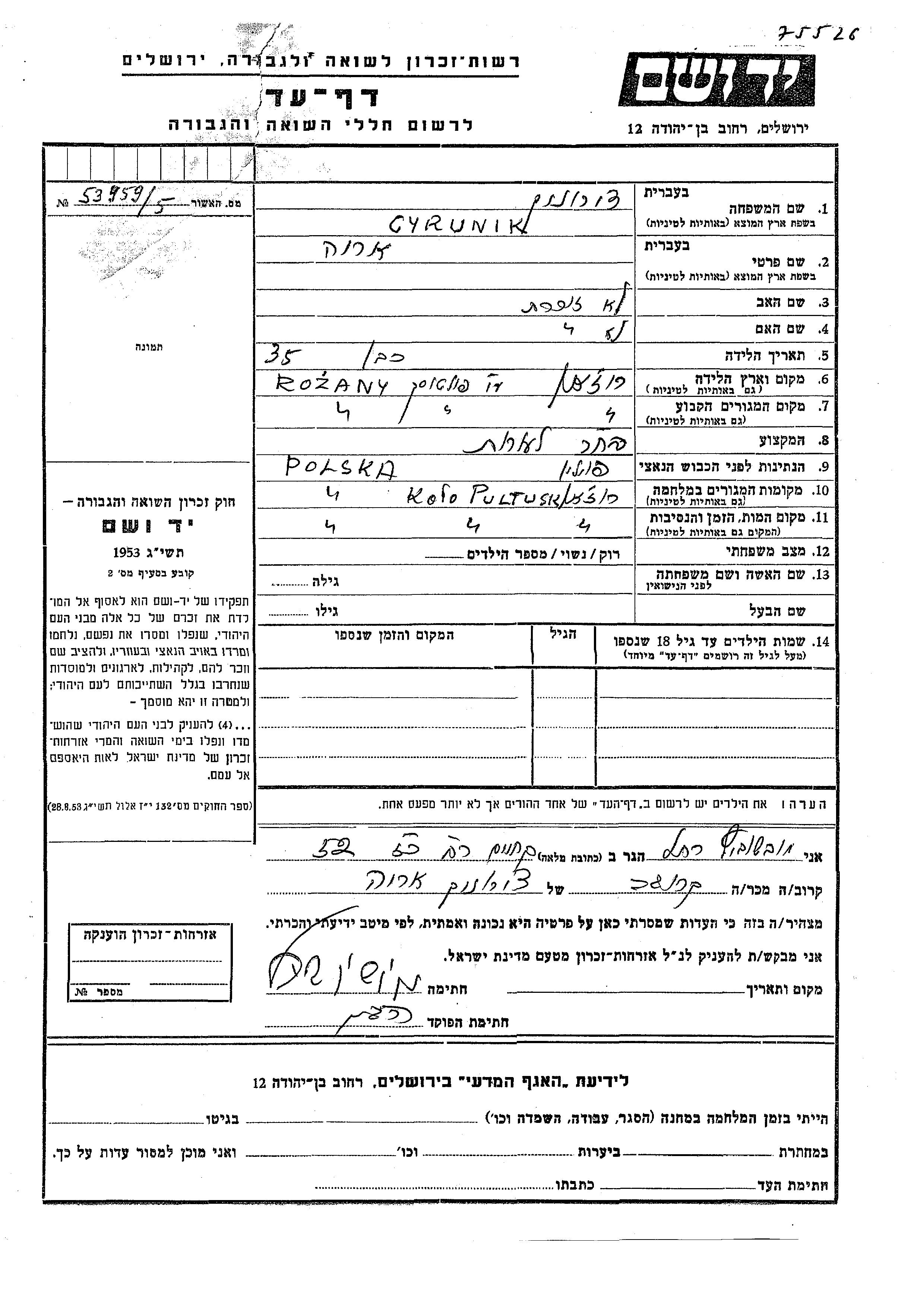Яд Вашем - Листы свидетельских показаний Мемориального фонда