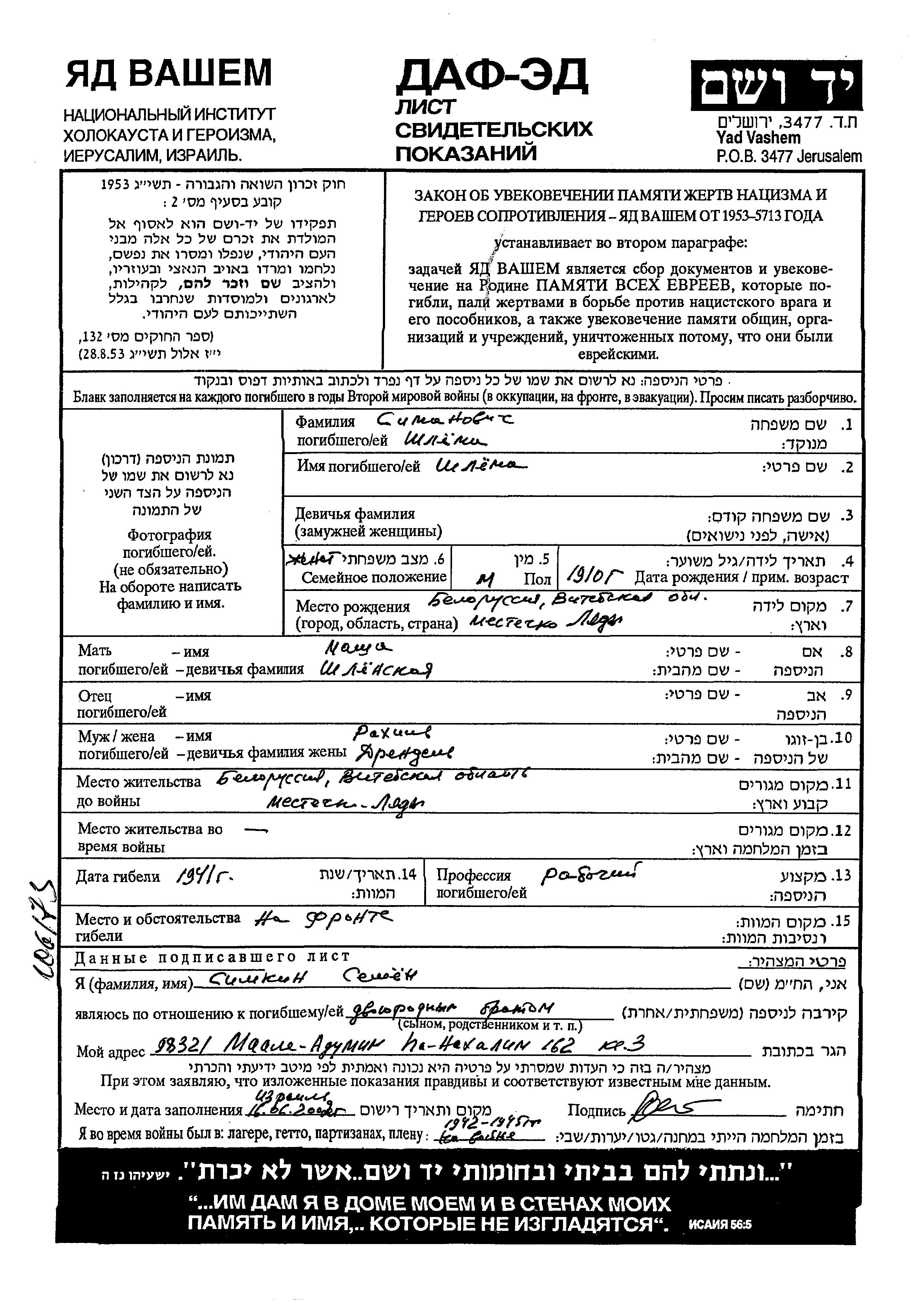 Поиск подателя Листа свидетельских показаний. Поиск по любому имени, включая уменьшительное или прозвище
