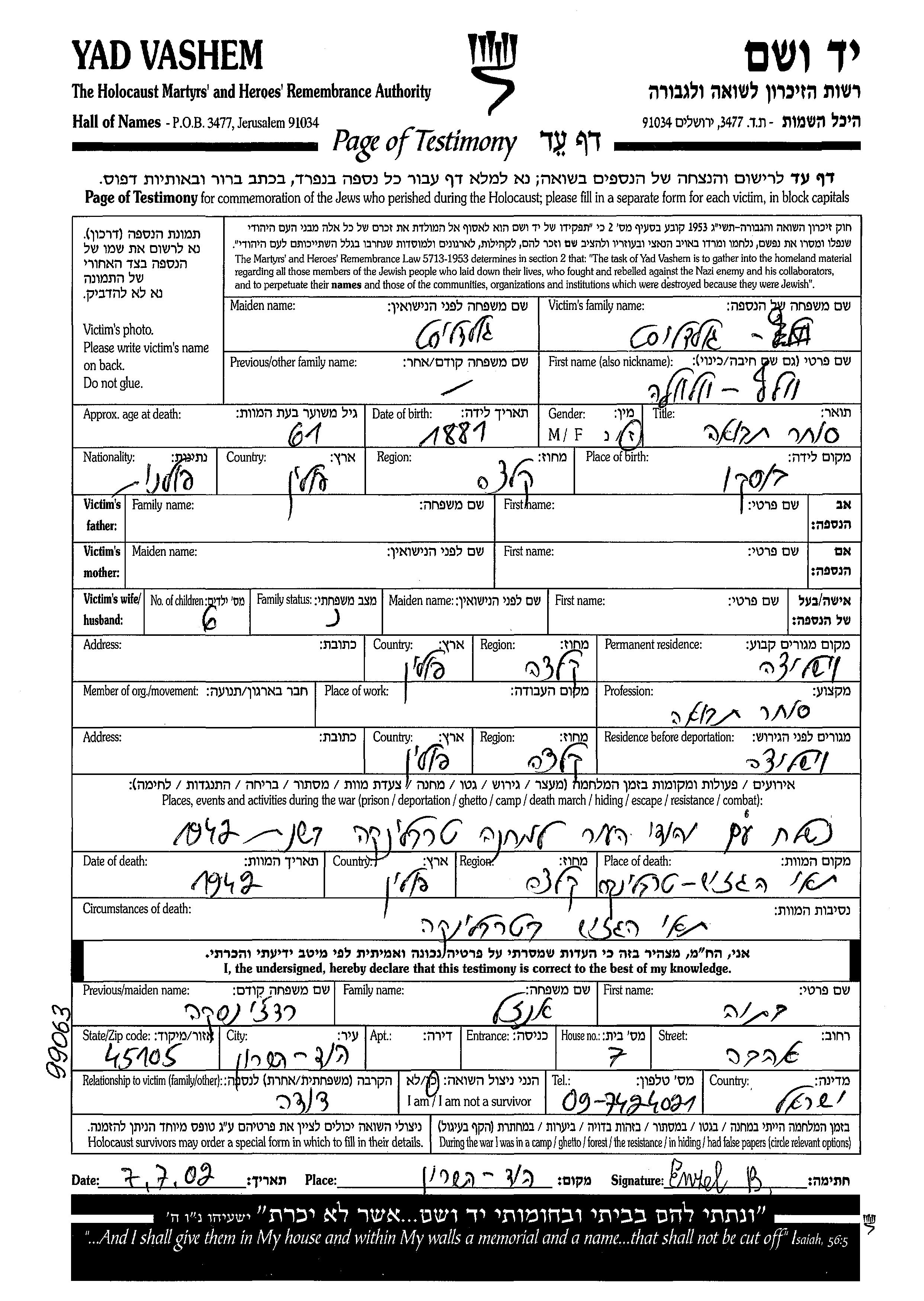Яд Вашем - Листы свидетельских показаний Мемориального фонда