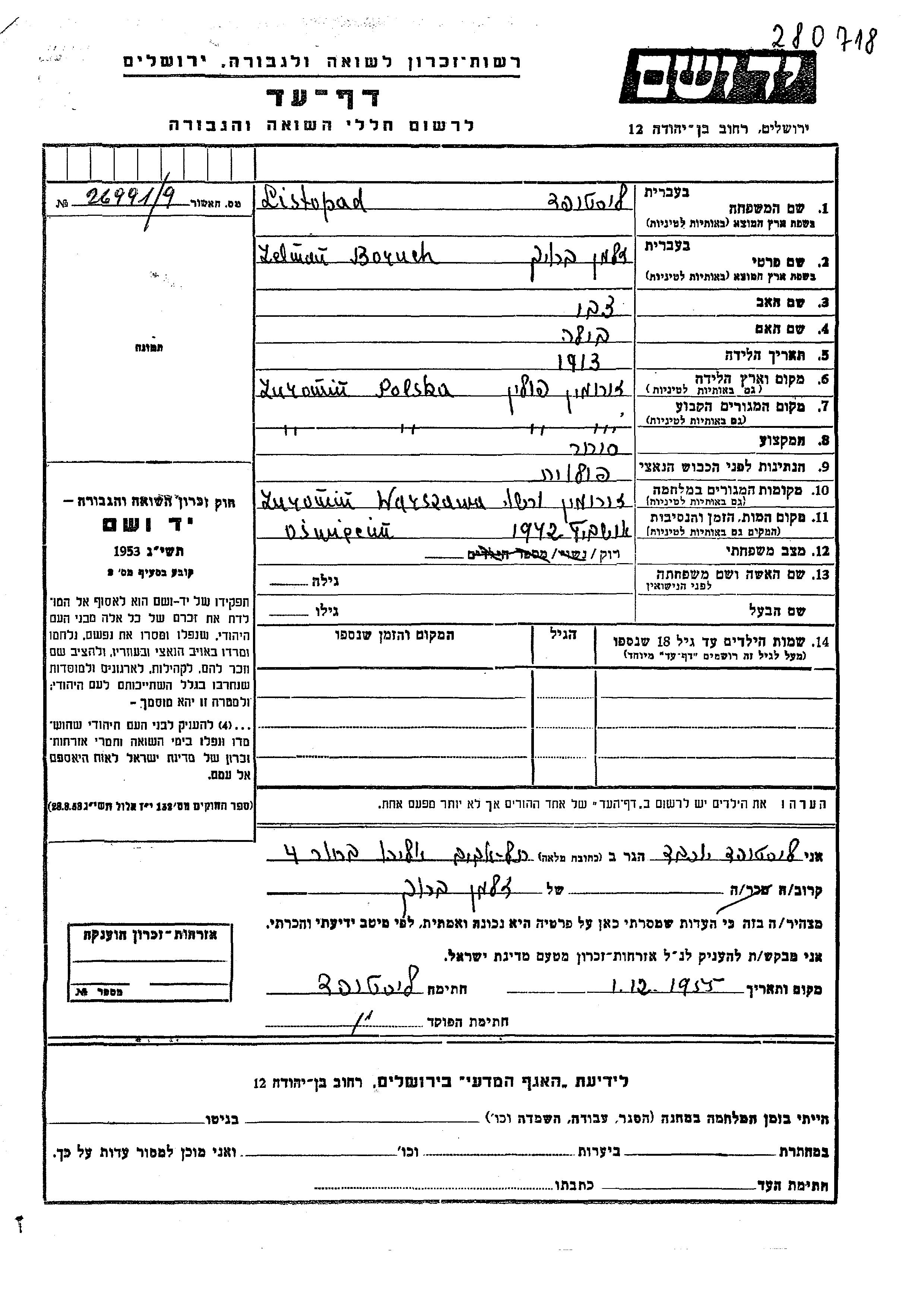 Яд Вашем - Листы свидетельских показаний Мемориального фонда