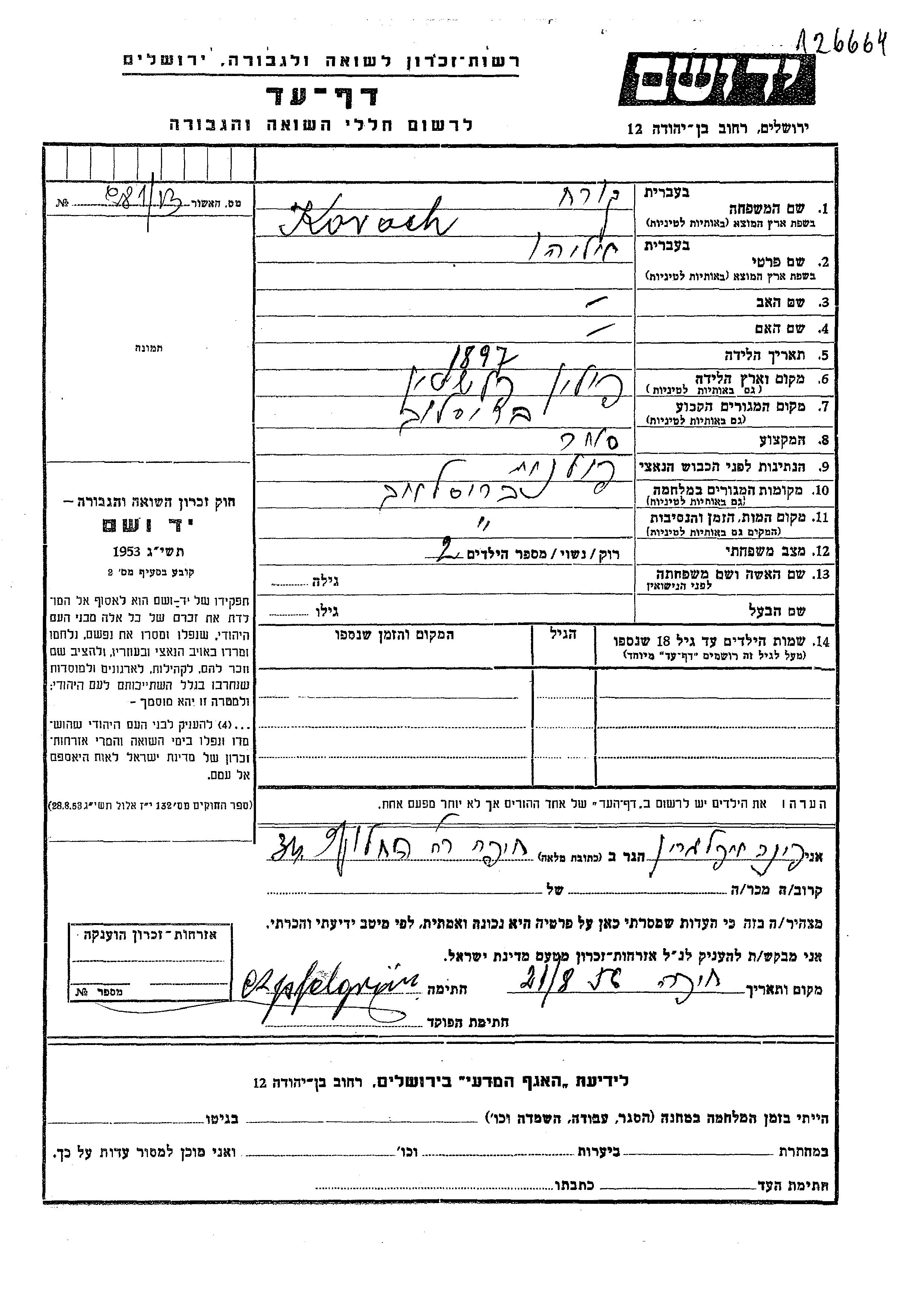 Яд Вашем - Листы свидетельских показаний Мемориального фонда