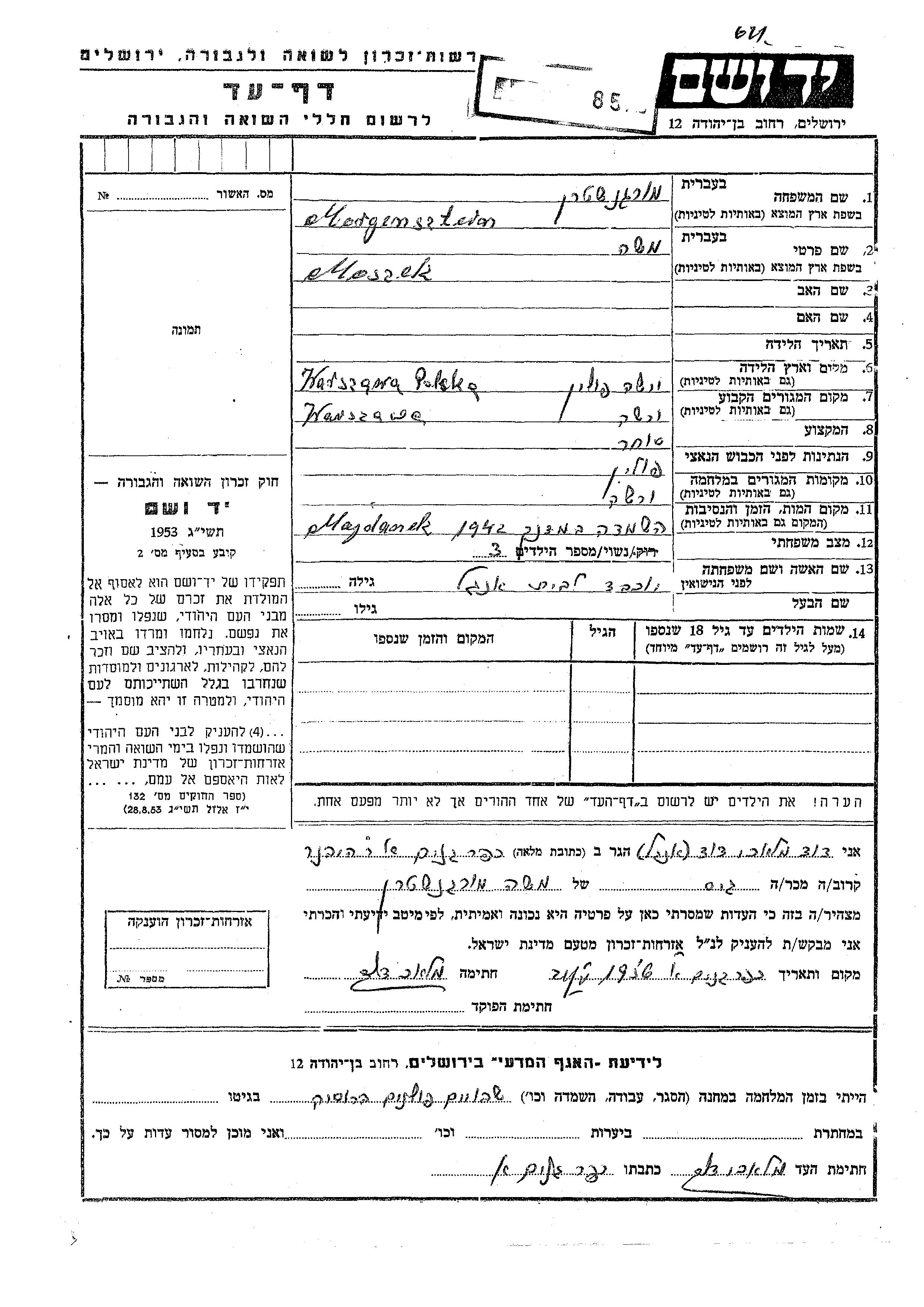 Моргенштерн Мошек Варшава, Польша Лист свидетельских показаний