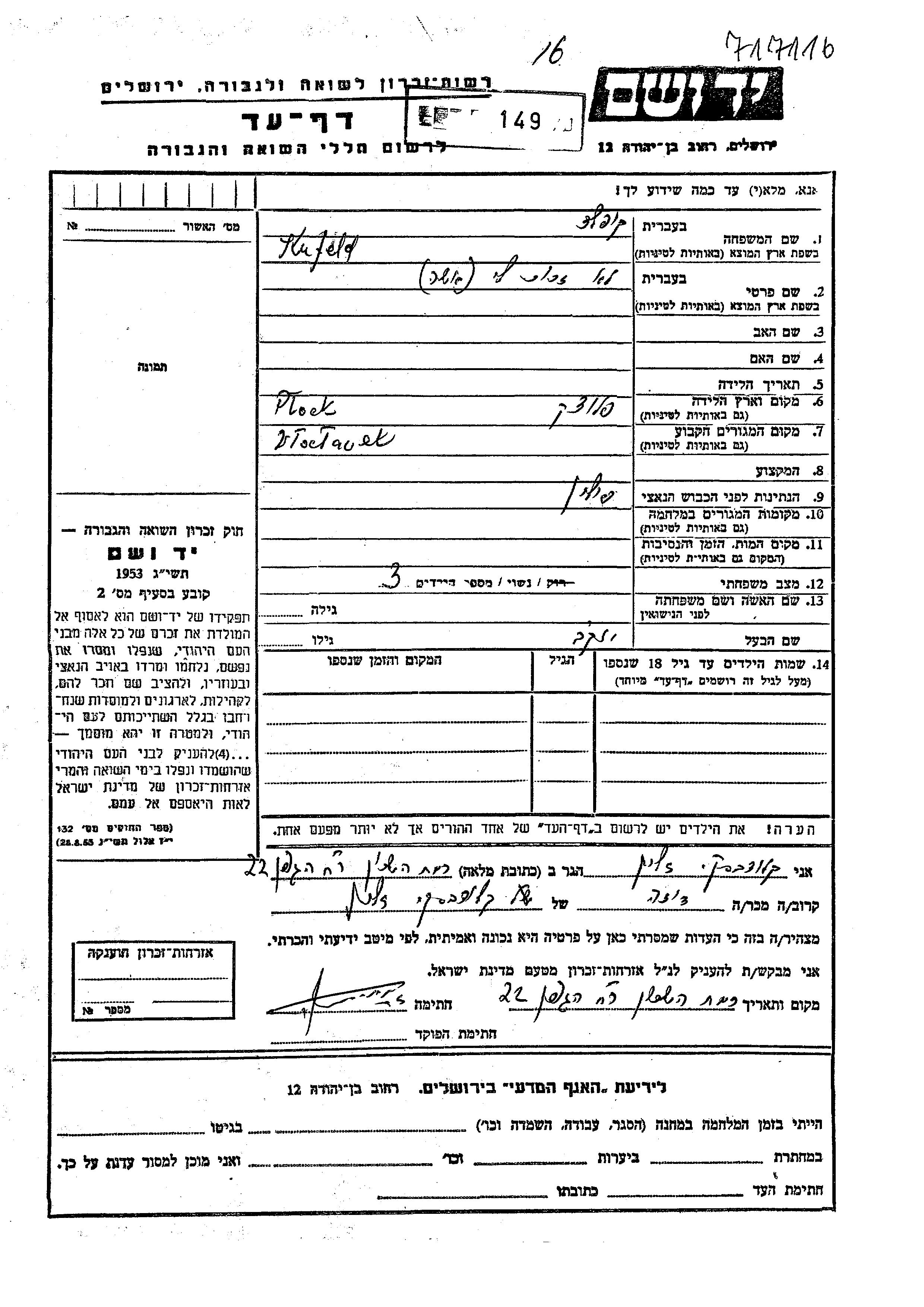 Куфельд Имя неизвестно Влоцлавек, Польша Лист свидетельских показаний