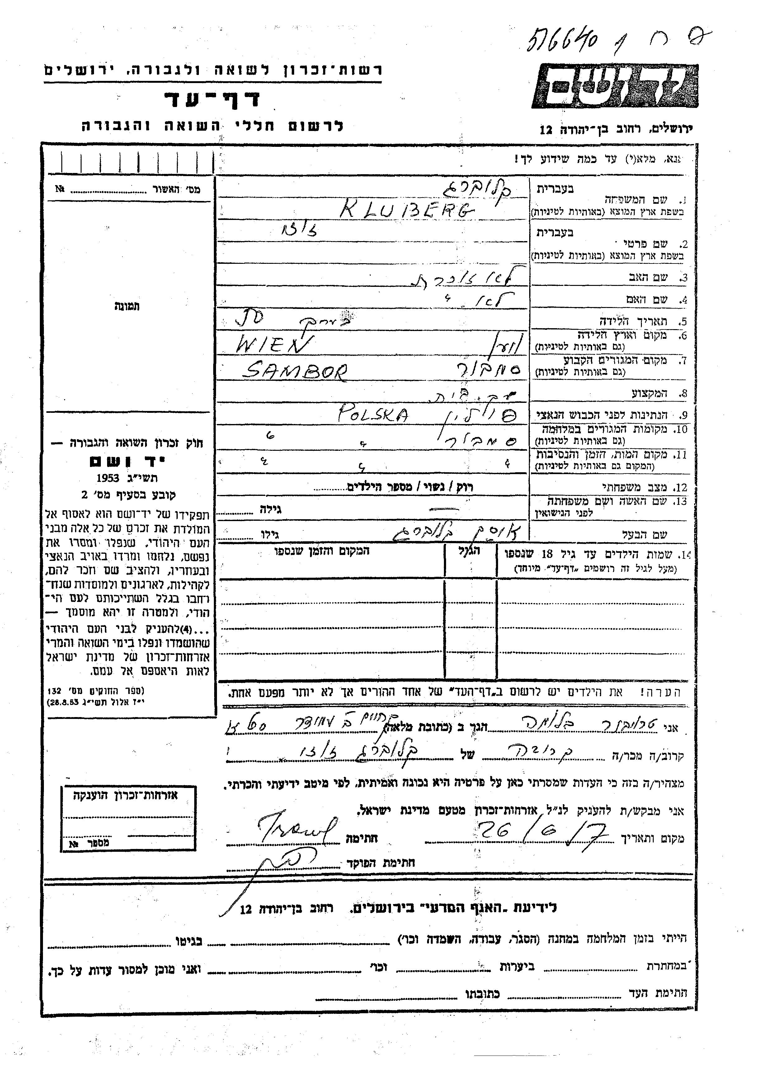 Клуберг Зузи Самбор, Польша Лист свидетельских показаний