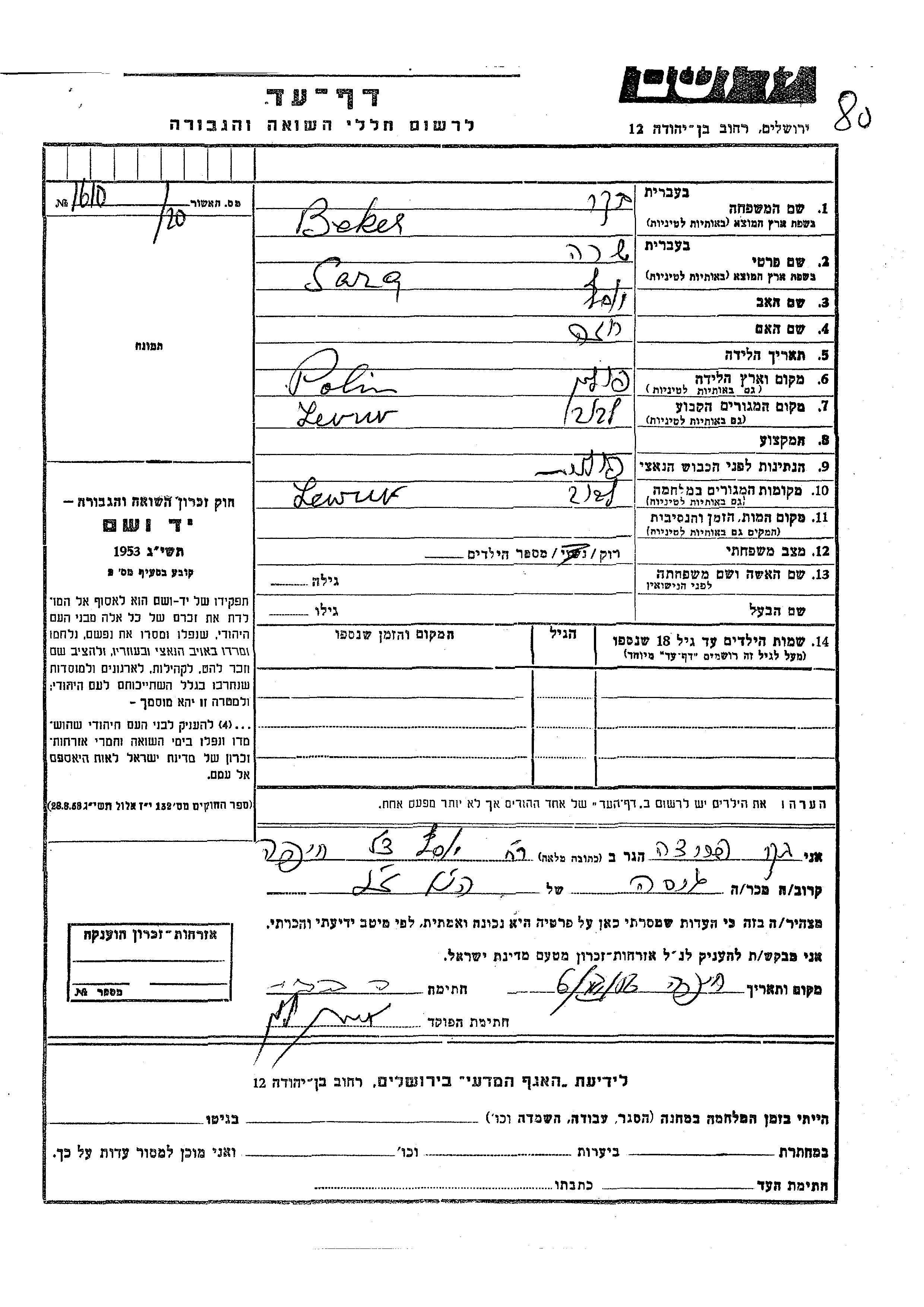 Сара Бекер, место рождения: Польша. Отец: Иосеф, mать:Роза. Холост / не замужем. Место жительства до войны: Львов, Польша. Место во время войны: Львов, Польша.