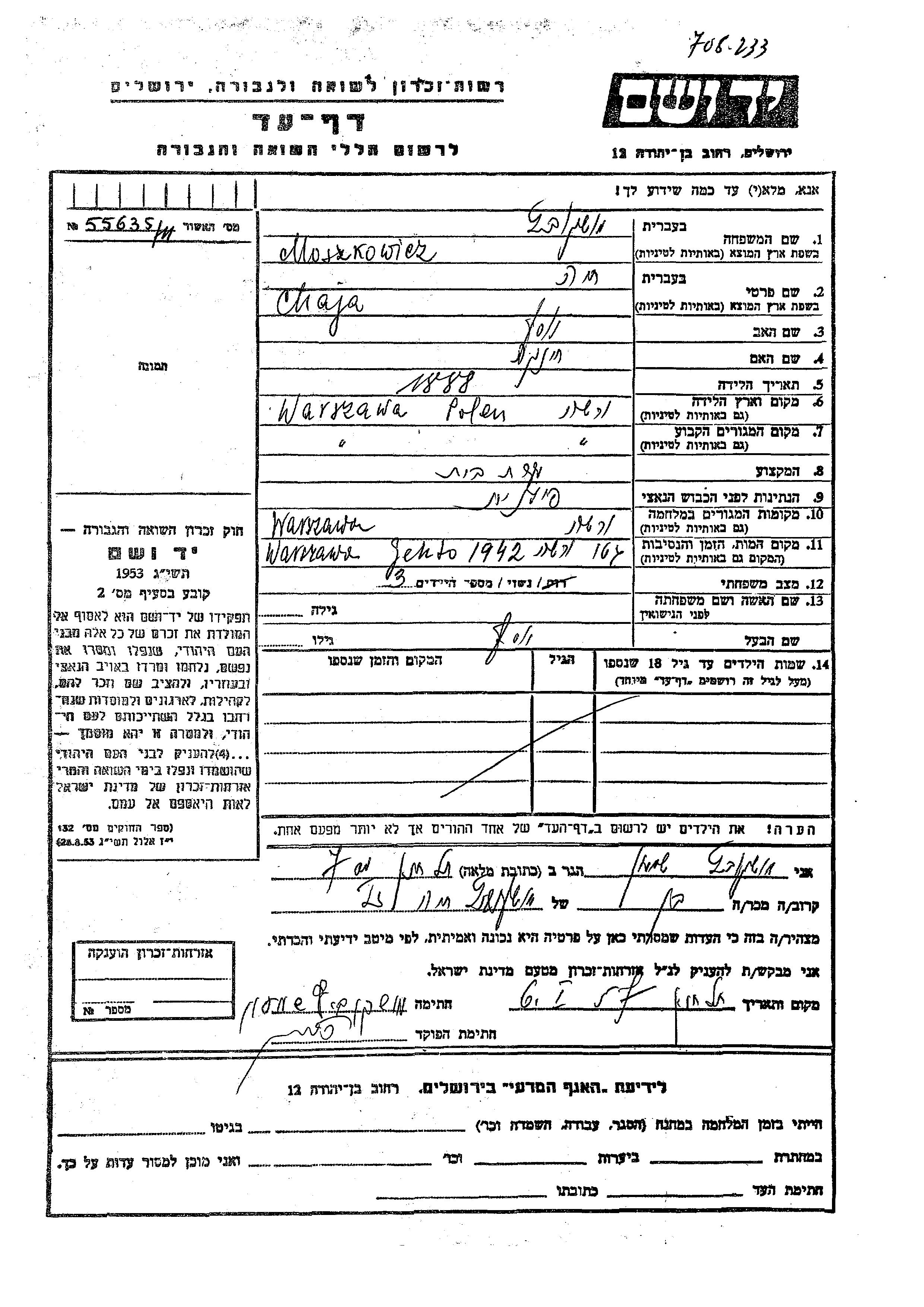 Мошкович Хая 1888 Варшава, Польша Лист свидетельских показаний