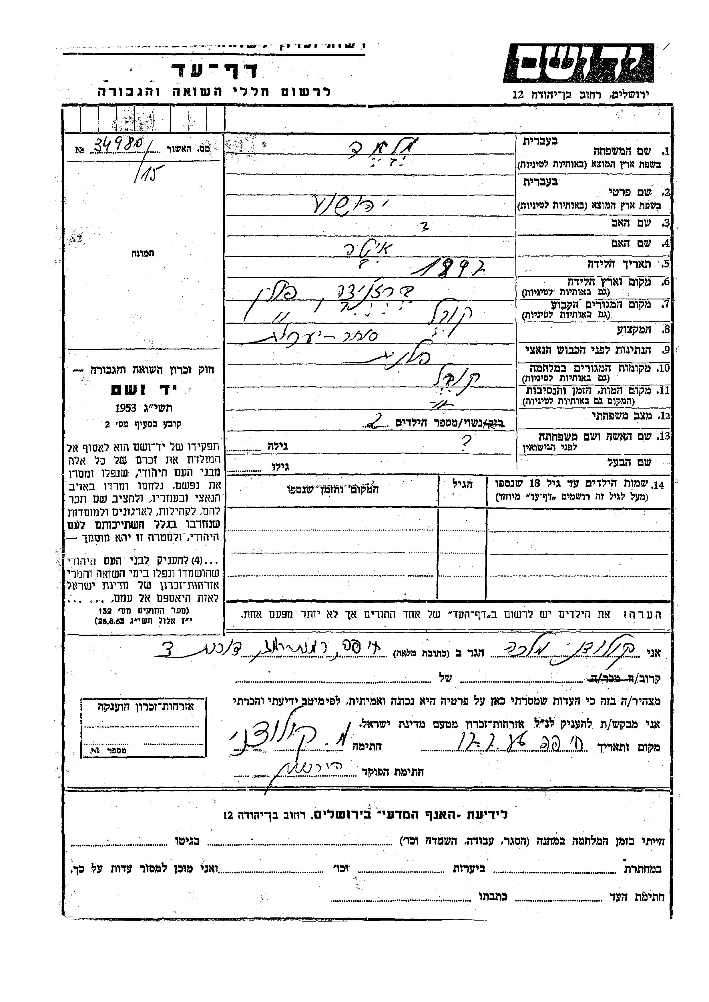 Яд Вашем - Листы свидетельских показаний Мемориального фонда