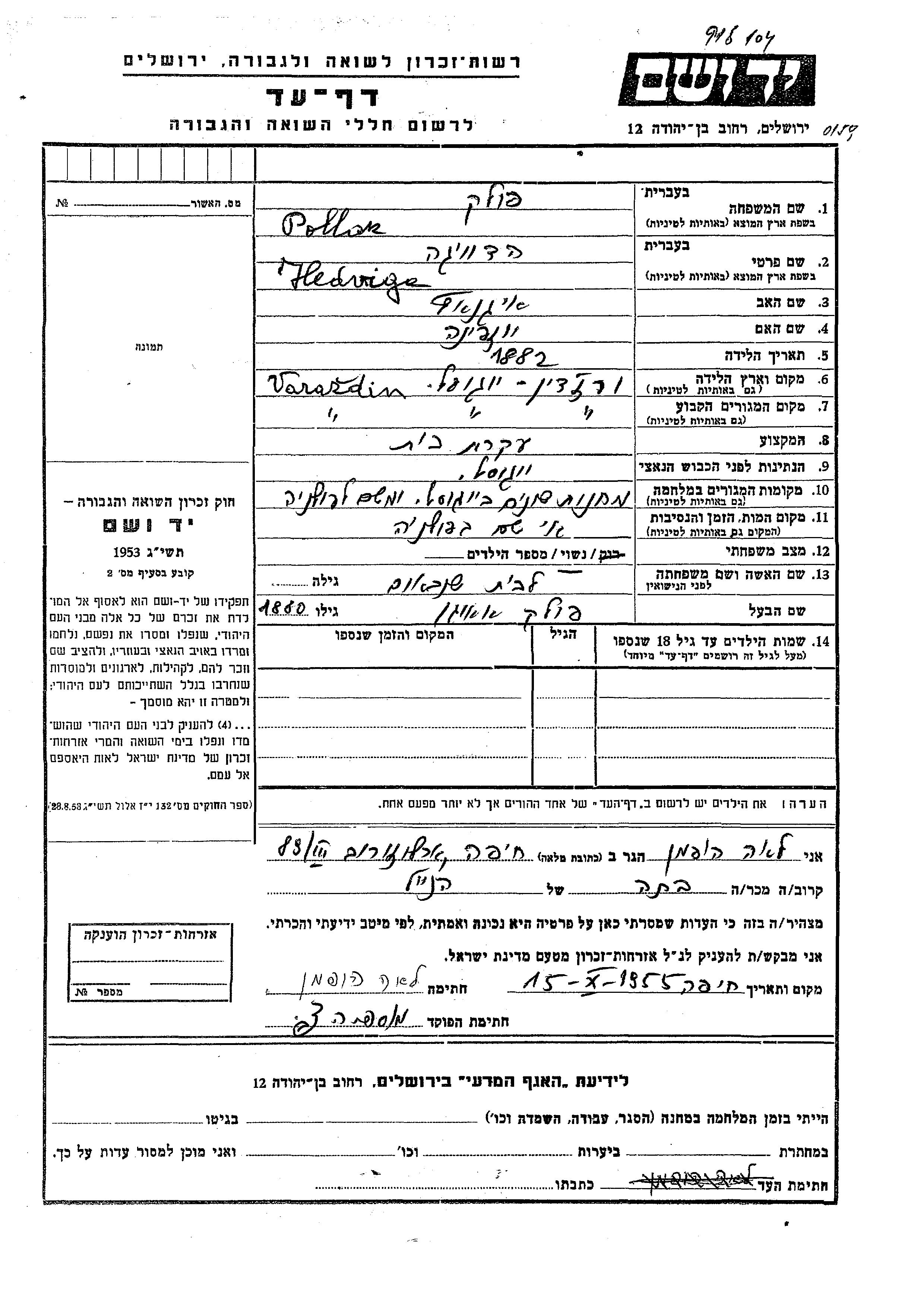 Поллак Хедвига 1882 Вараждин, Югославия Лист свидетельских показаний