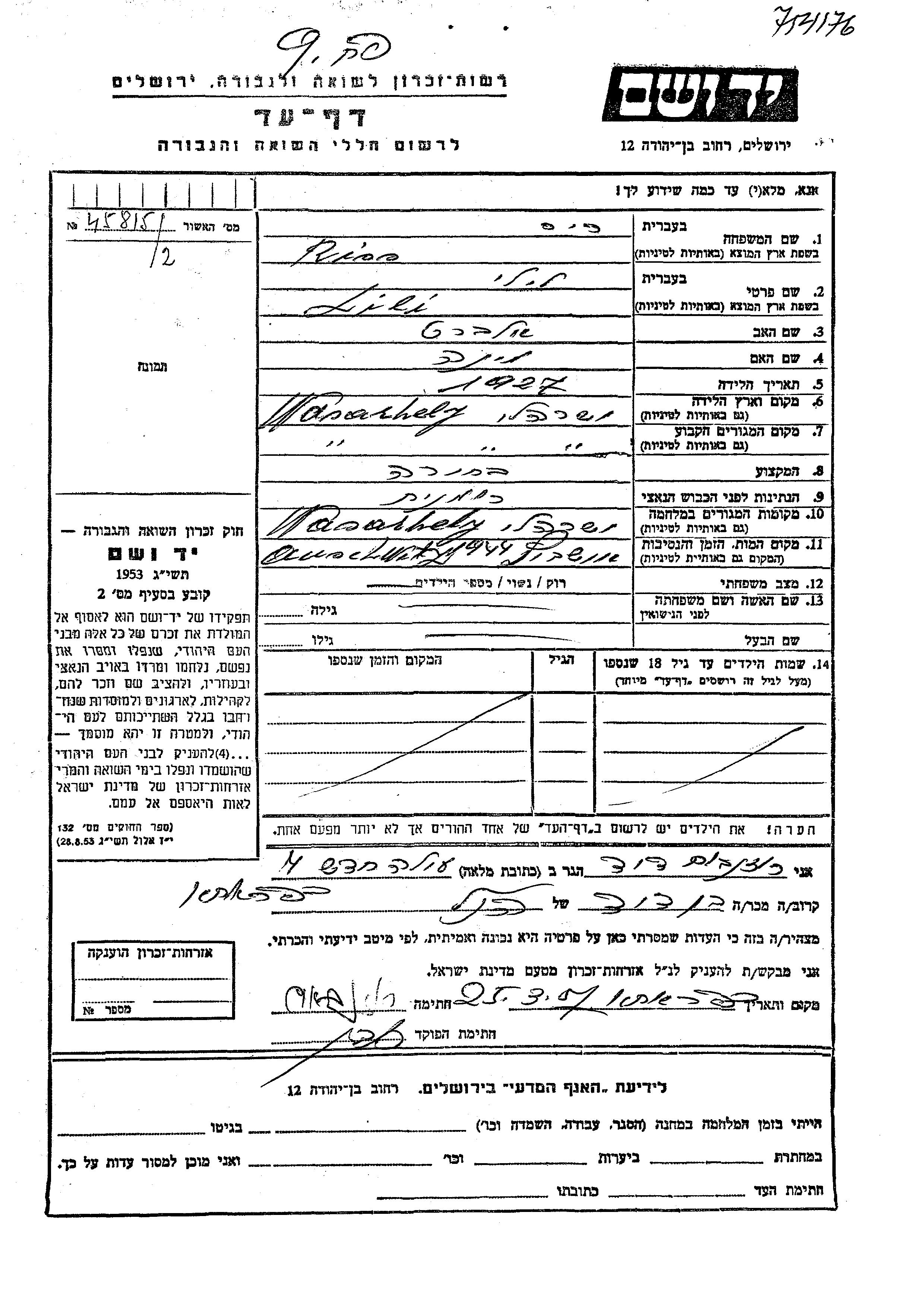 Рисс Лили 1927 Вашархей, Румыния Лист свидетельских показаний