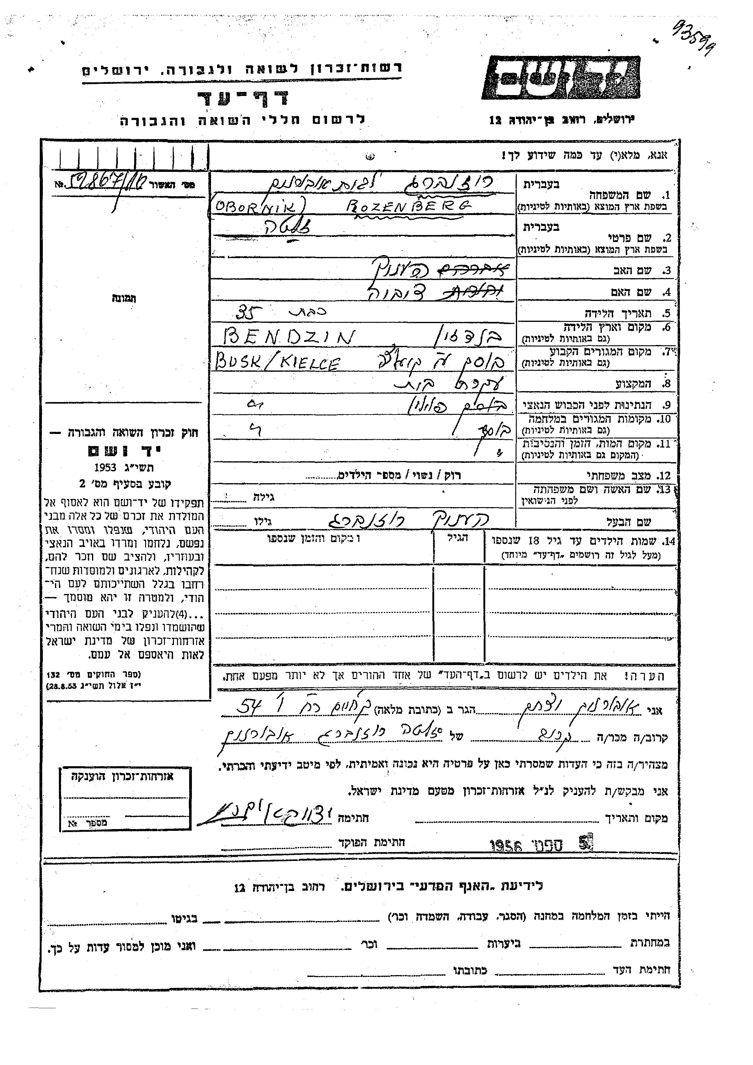 Злата Розенберг, девичья фамилия Оборник, место рождения: Бендзин, Польша. Отец: Хенох, mать:Цивья. Домохозяйка. Женат / замужем. Место жительства до войны: Буск, Польша. Место во время войны: Буск, Польша.