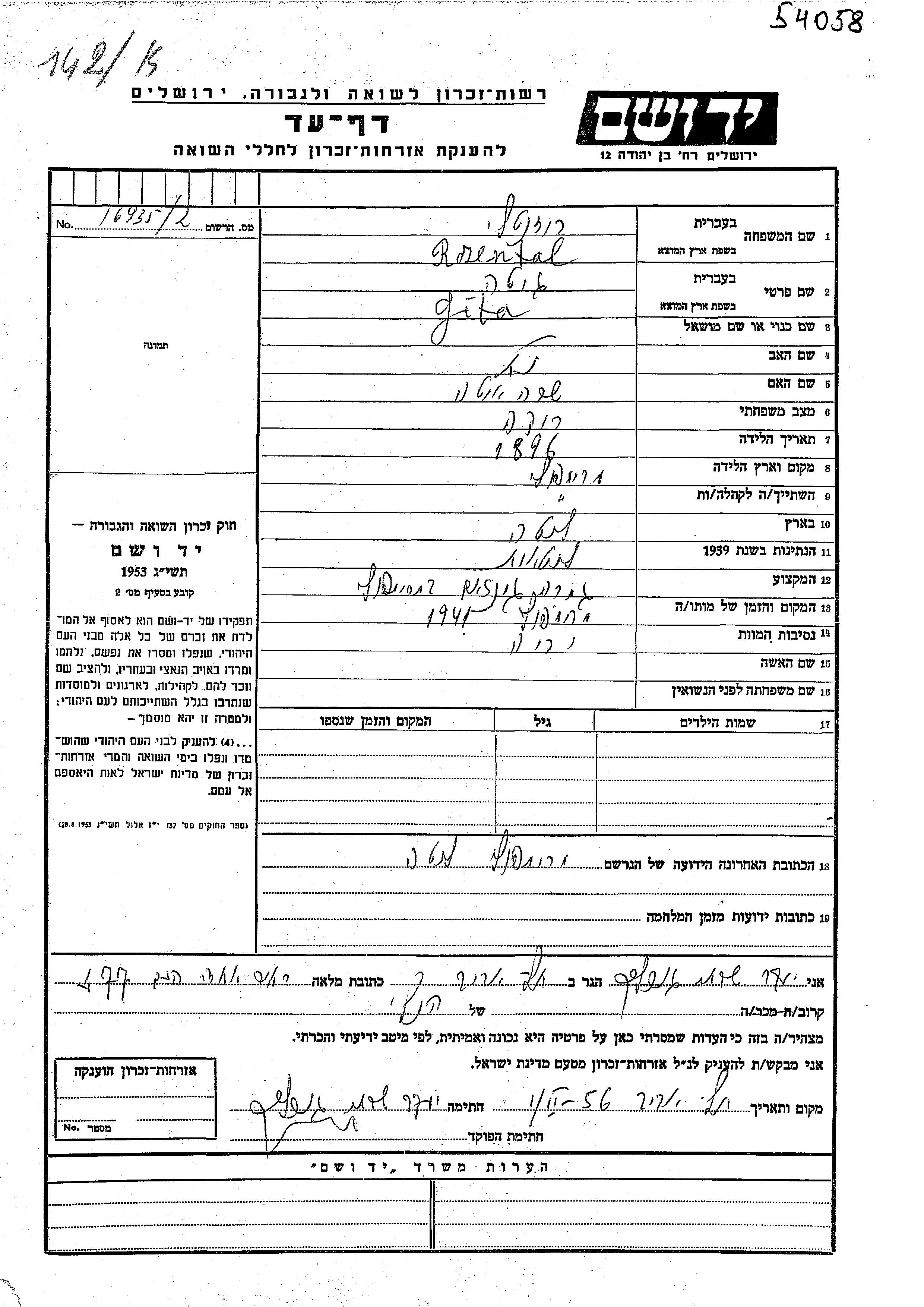 Яд Вашем - Листы свидетельских показаний Мемориального фонда