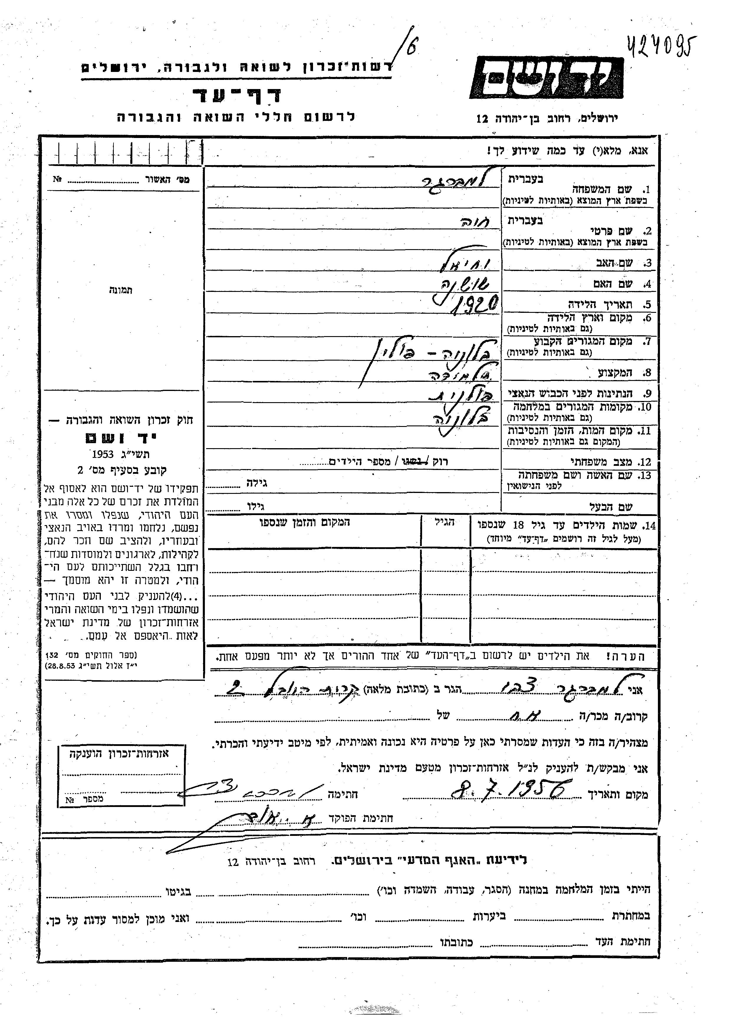 Яд Вашем - Листы свидетельских показаний Мемориального фонда