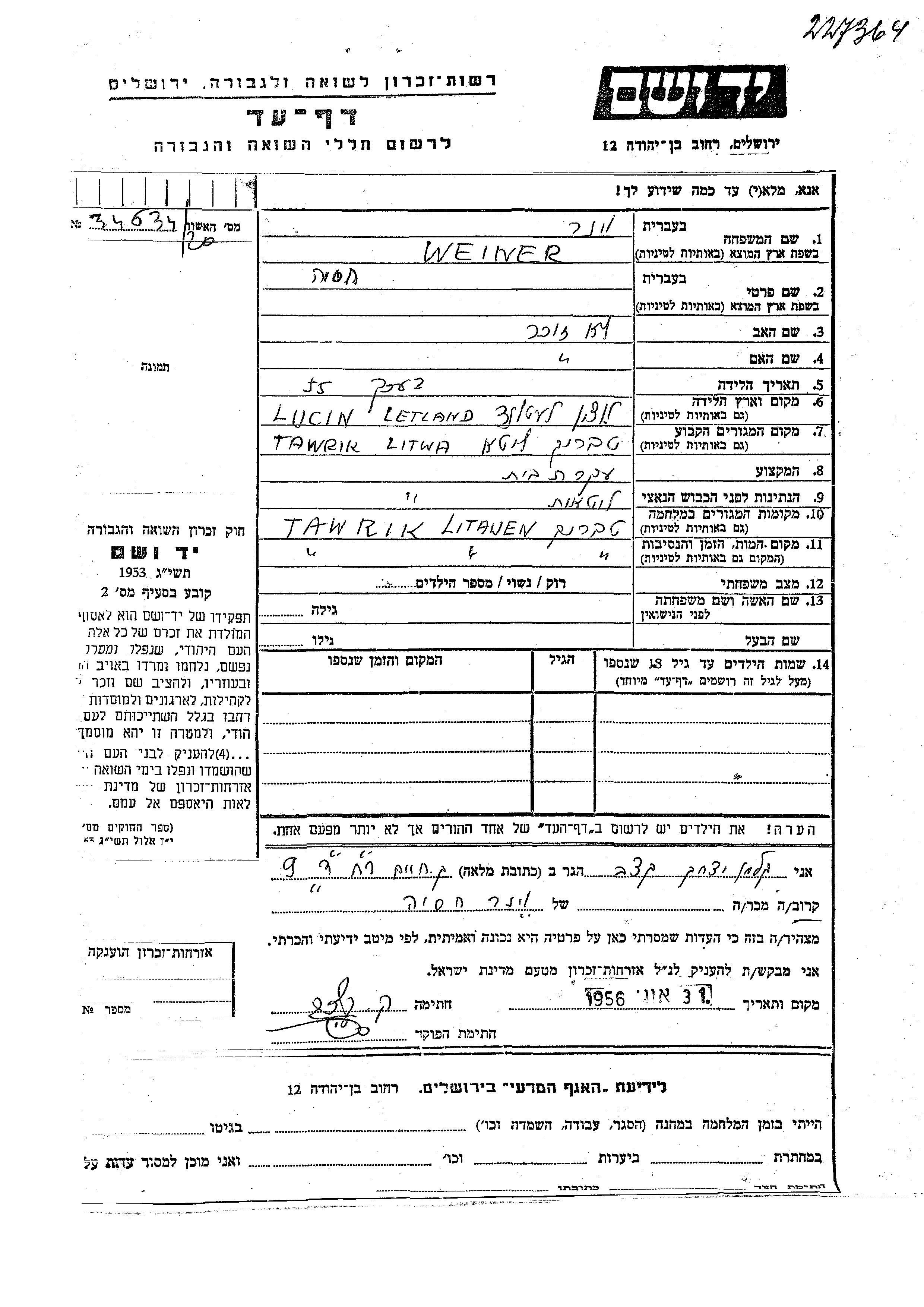 Яд Вашем - Листы свидетельских показаний Мемориального фонда