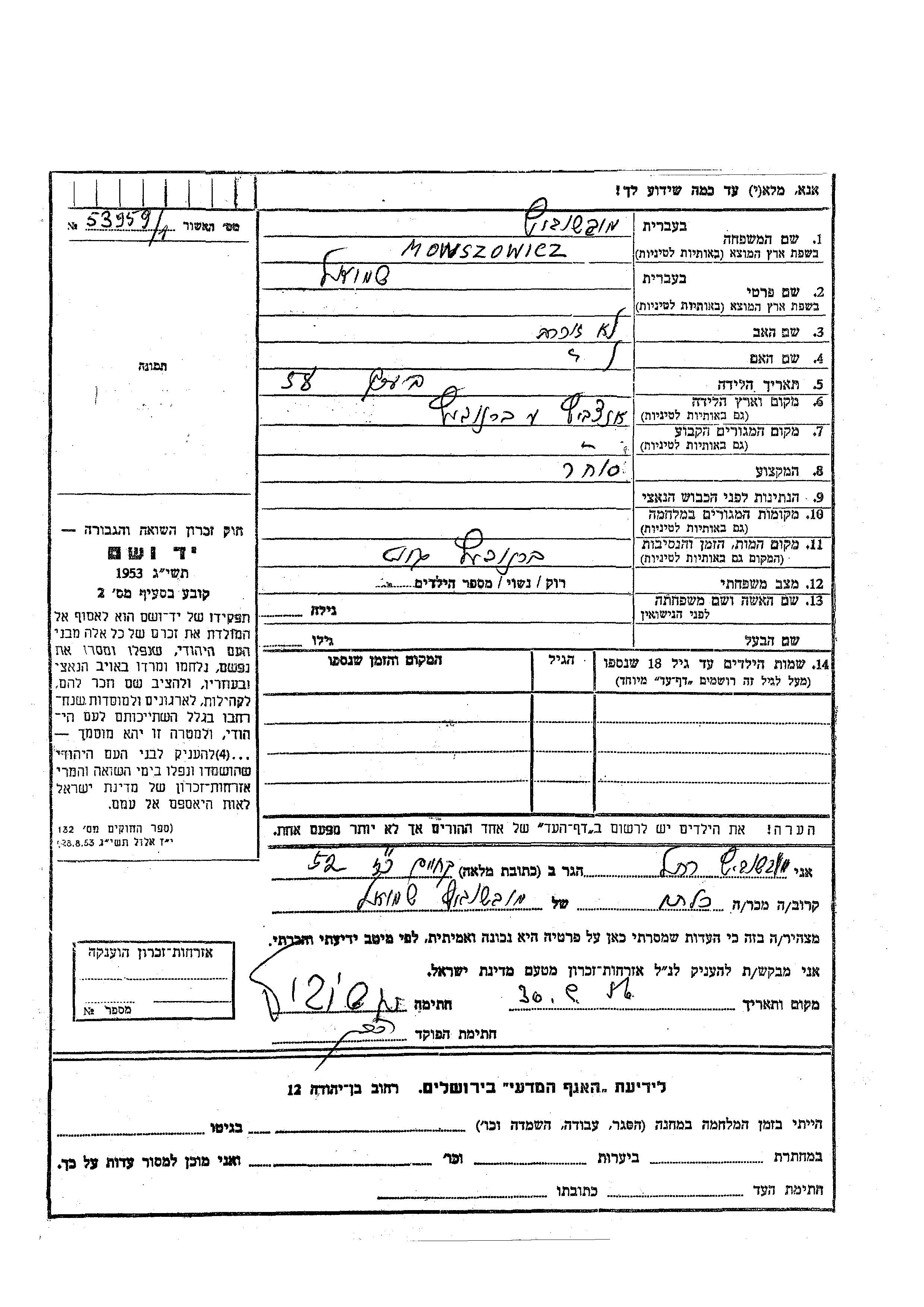Мовшович Шмуэль место не указано, Лист свидетельских показаний