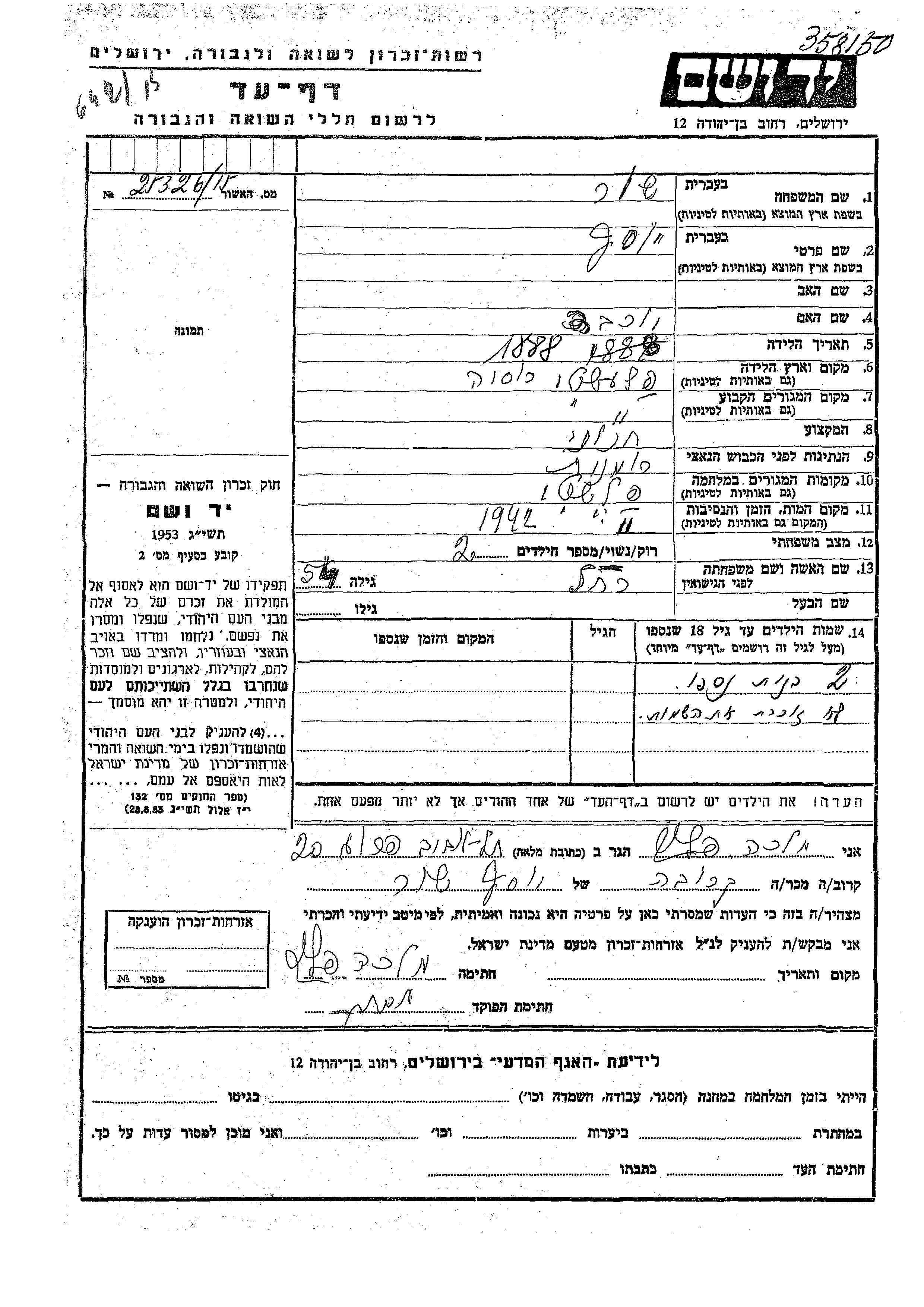Яд Вашем - Листы свидетельских показаний Мемориального фонда